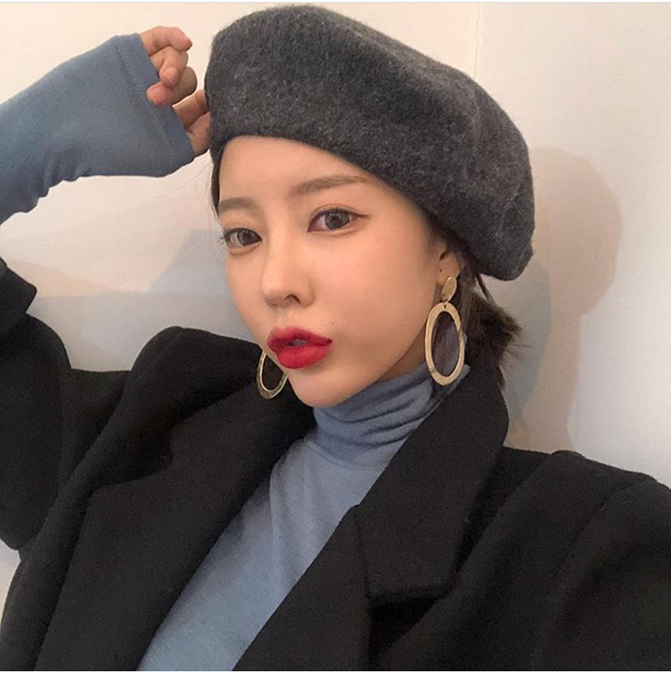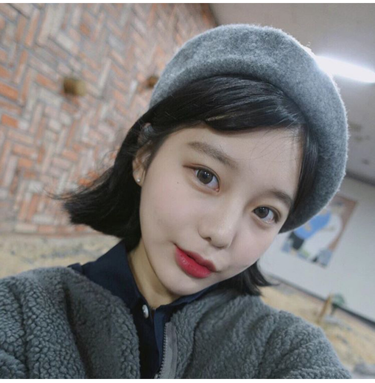 【澳洲羊毛】灰色貝蕾帽女秋冬韓版日系百搭毛呢畫家帽軟妹蓓蕾帽1入