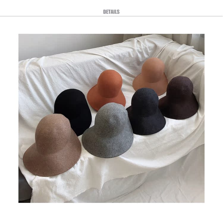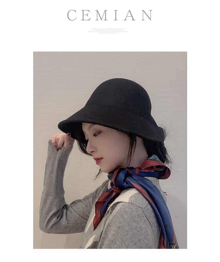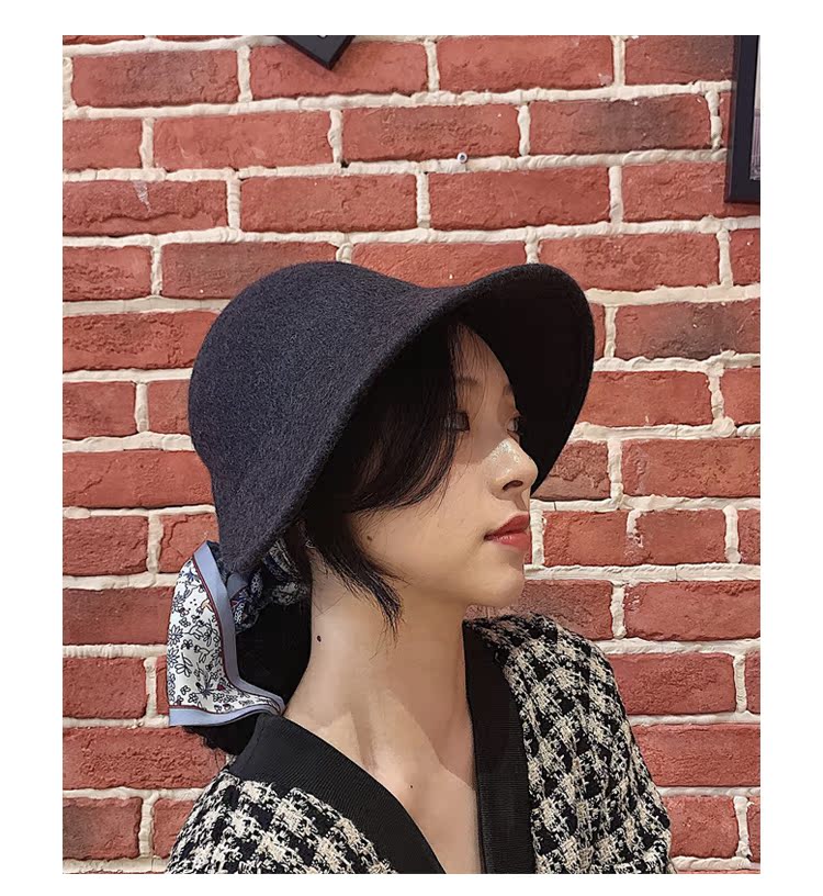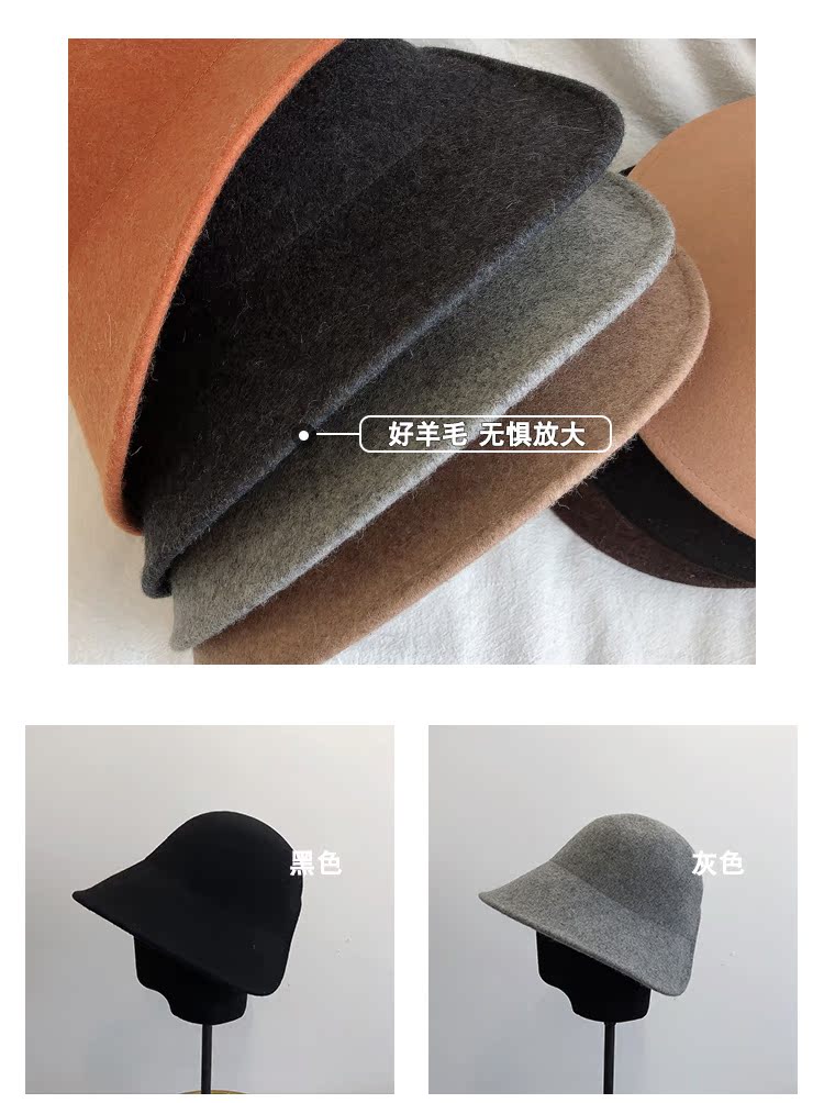 黑色漁夫帽女秋冬新款羊毛氈帽ins百搭日系復古禮帽圓頂氣質盆帽1入
