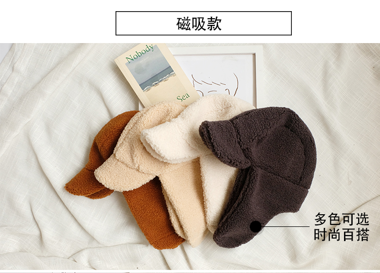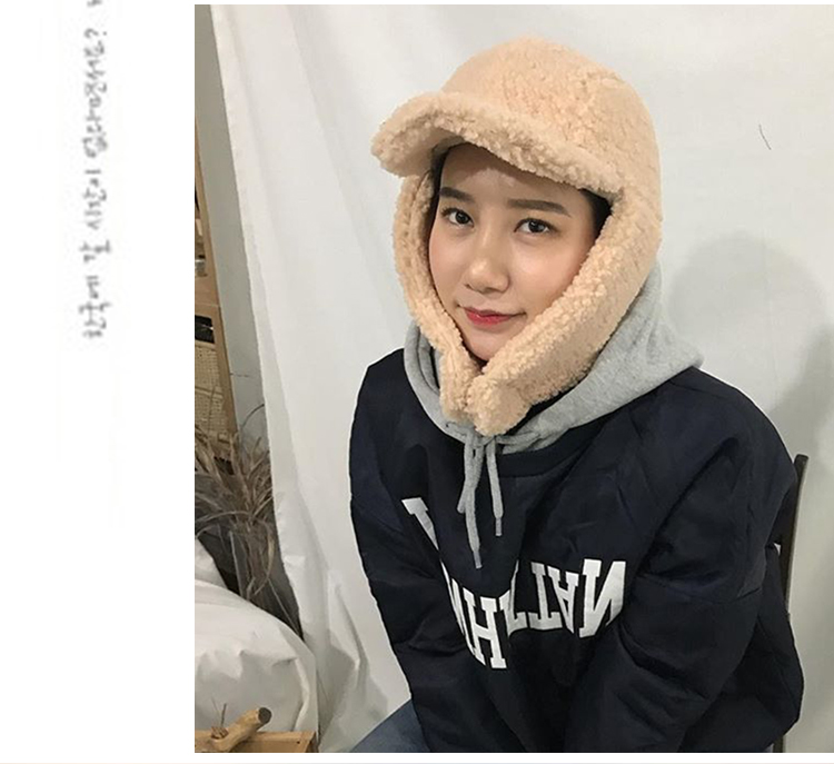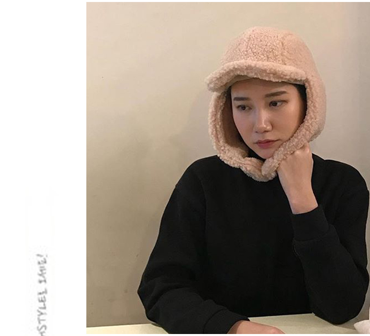 羊羔毛雷鋒帽子女冬天韓版可愛保暖護耳滑雪帽騎車防風帽飛行員帽1入