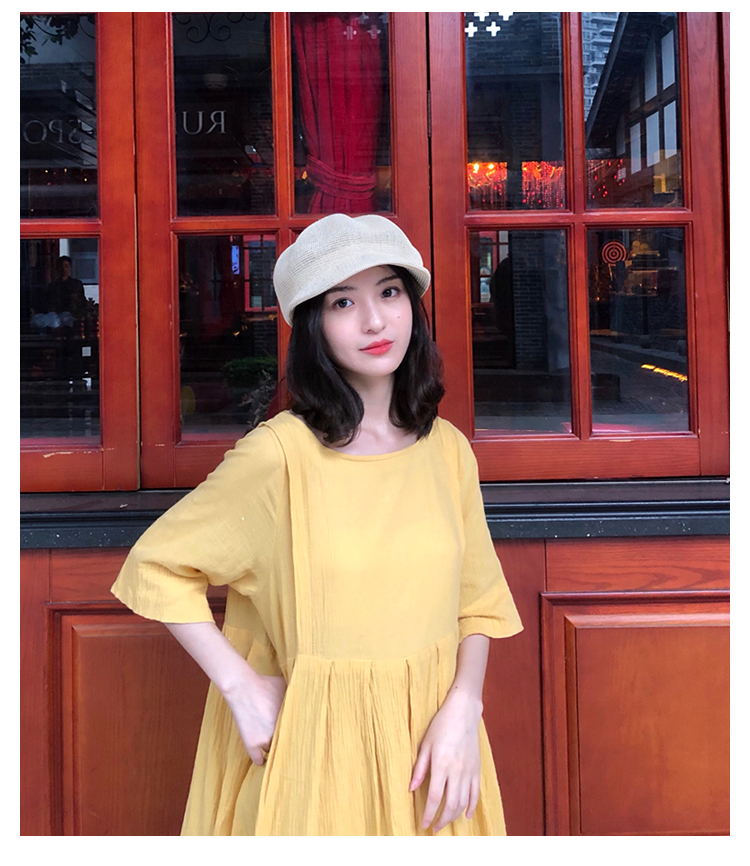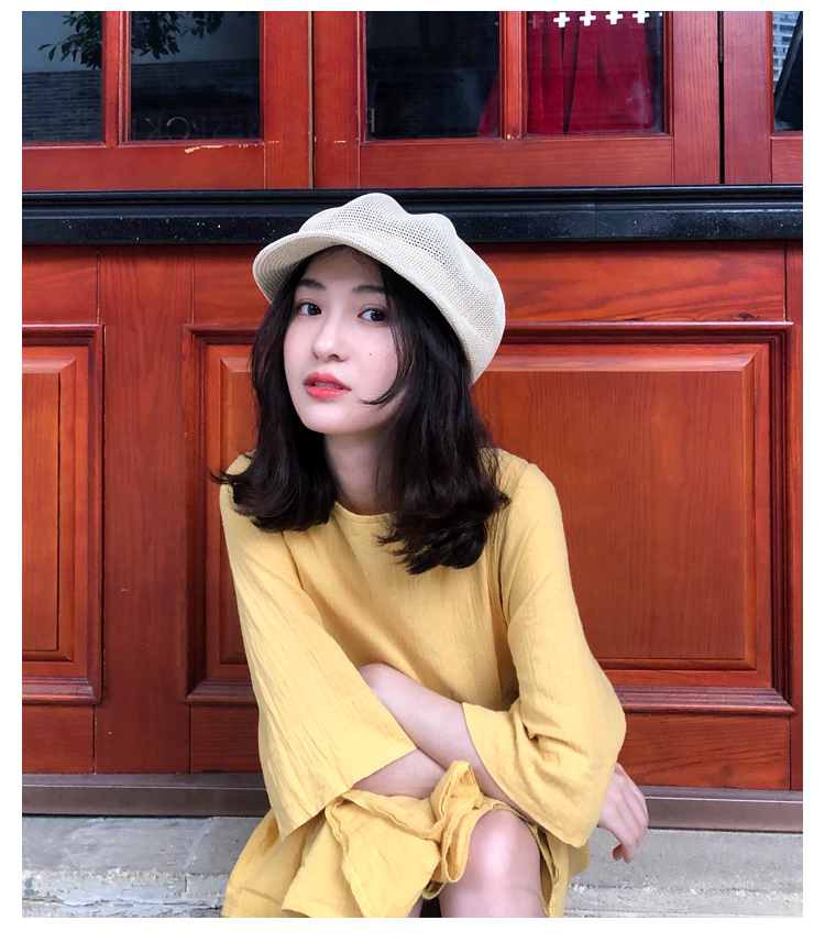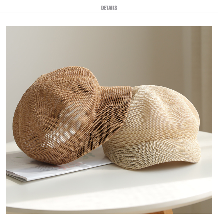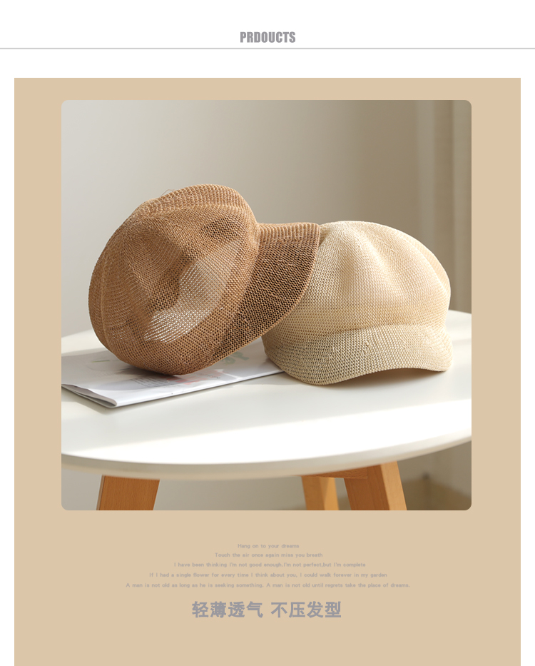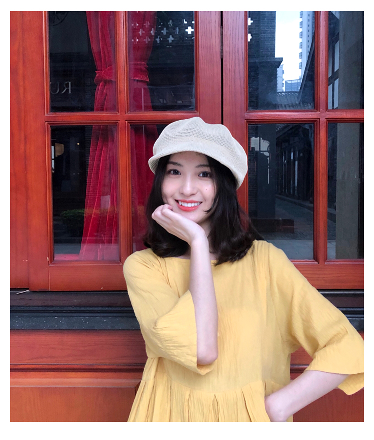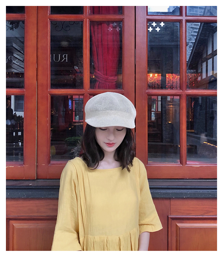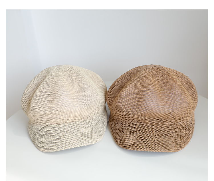 貝雷帽女夏季薄款透氣日系編織報童帽子出游百搭八角帽鴨舌畫家帽1入