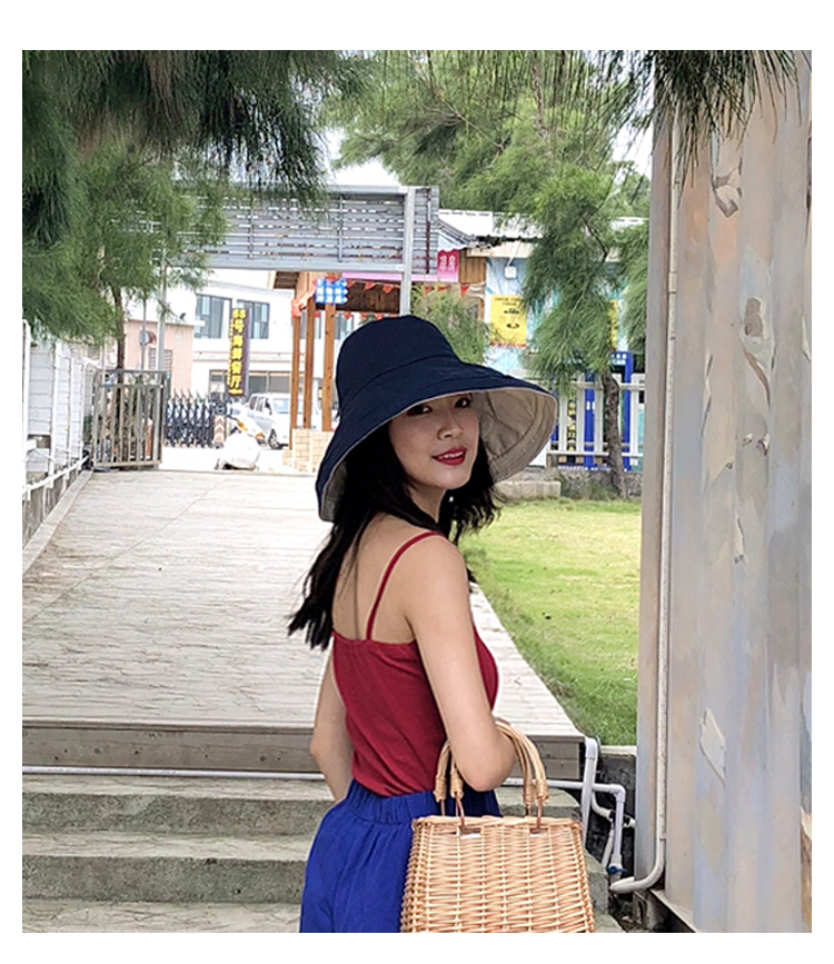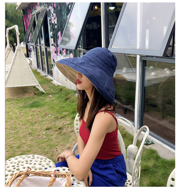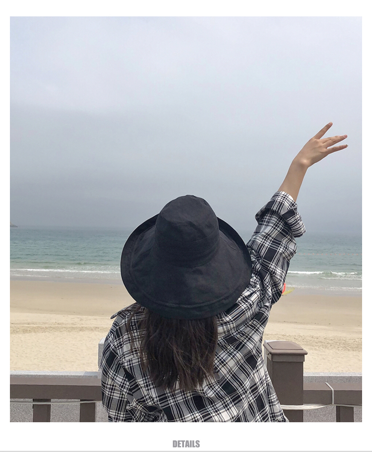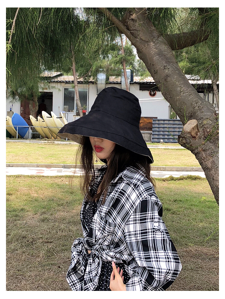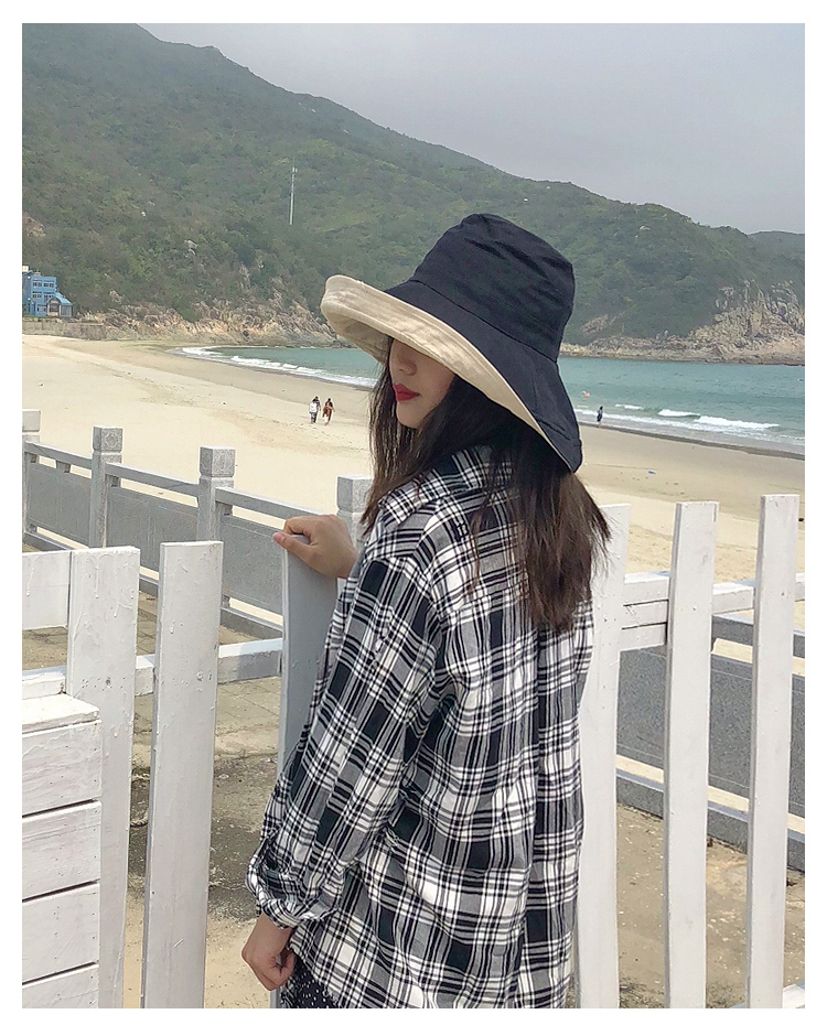 雙面戴大碼漁夫帽女夏韓版遮陽盆帽大頭圍防曬帽出游大帽檐太陽帽1入