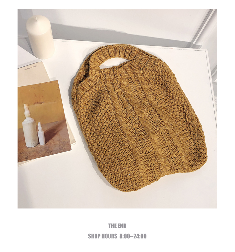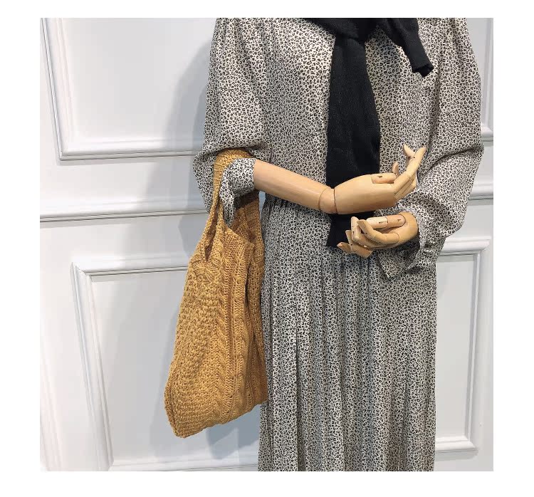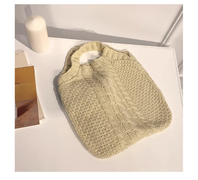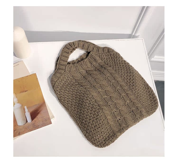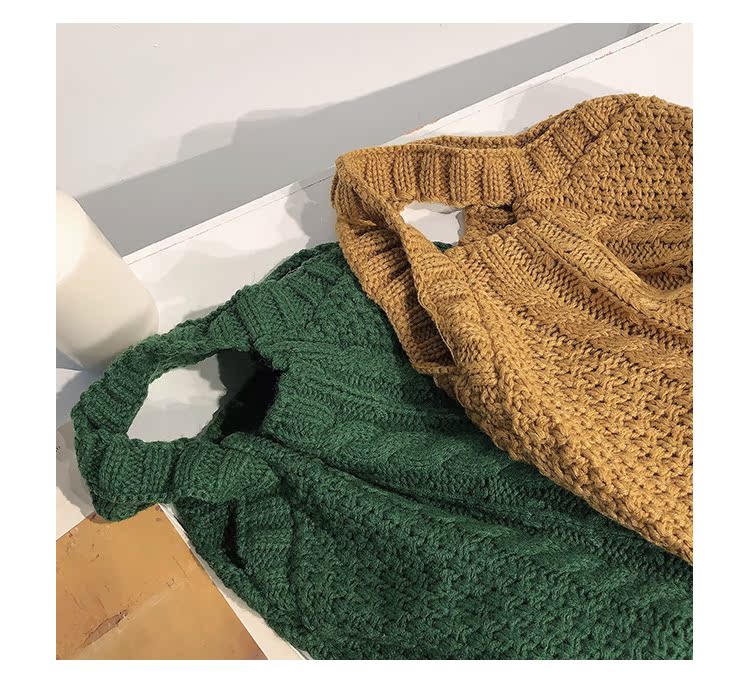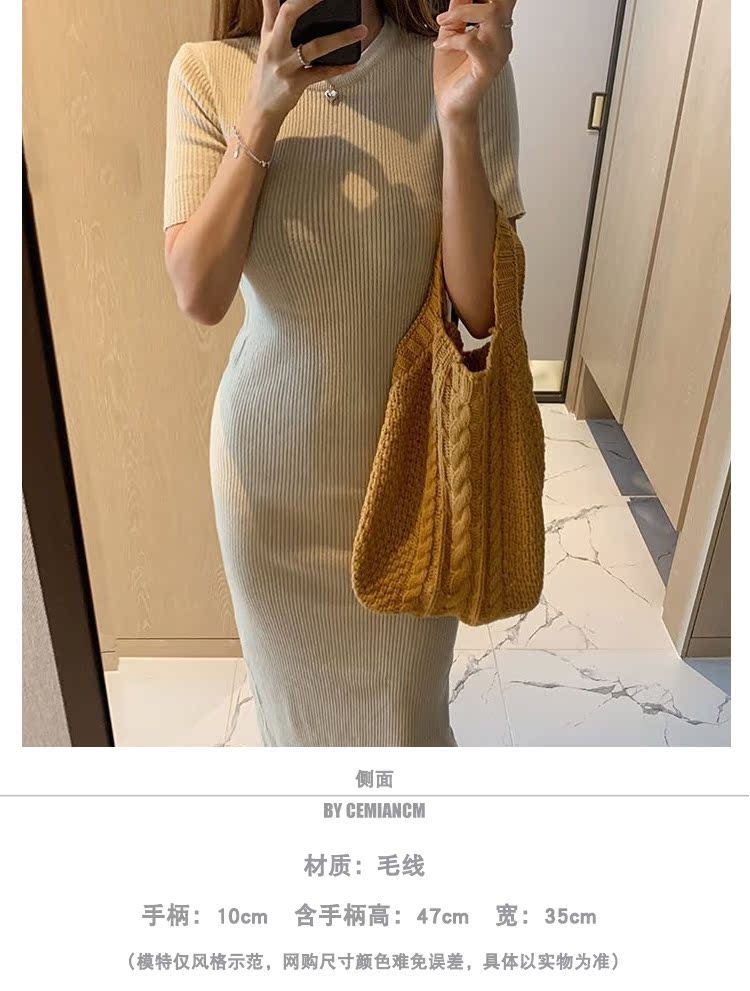 韓版新款ins針織購物袋休閑大容量女包包秋冬手提單肩編織毛線包1入