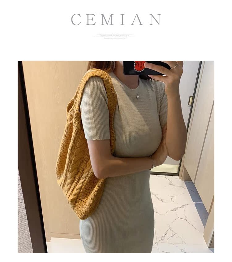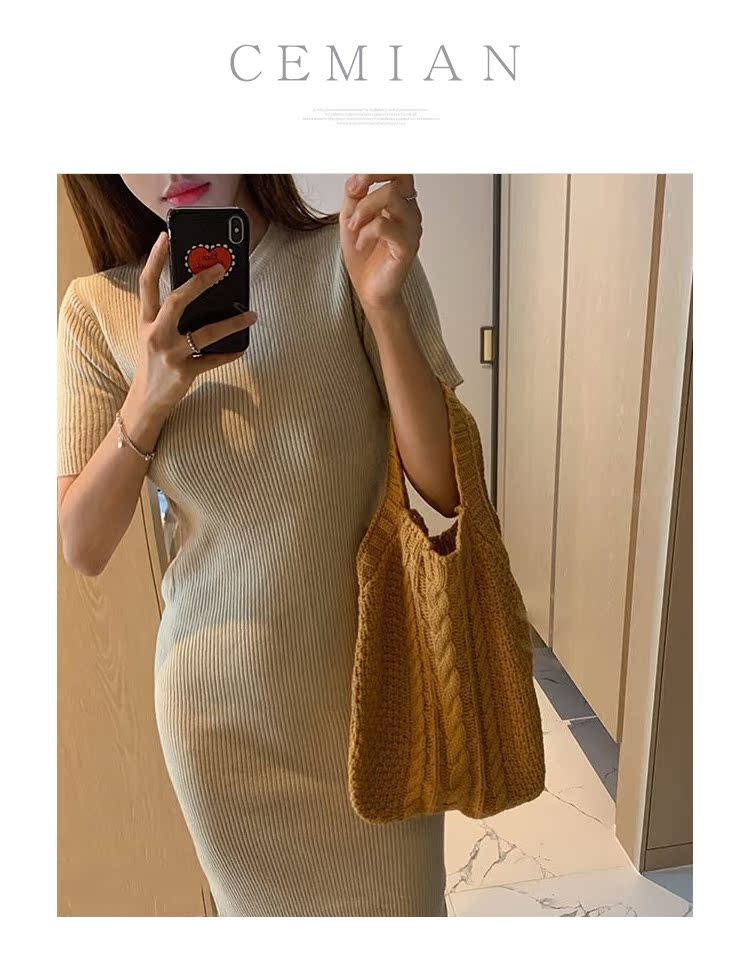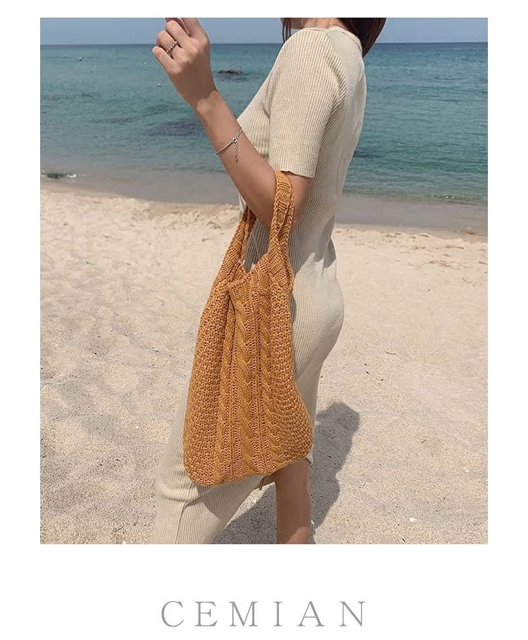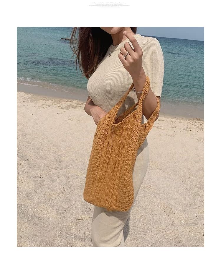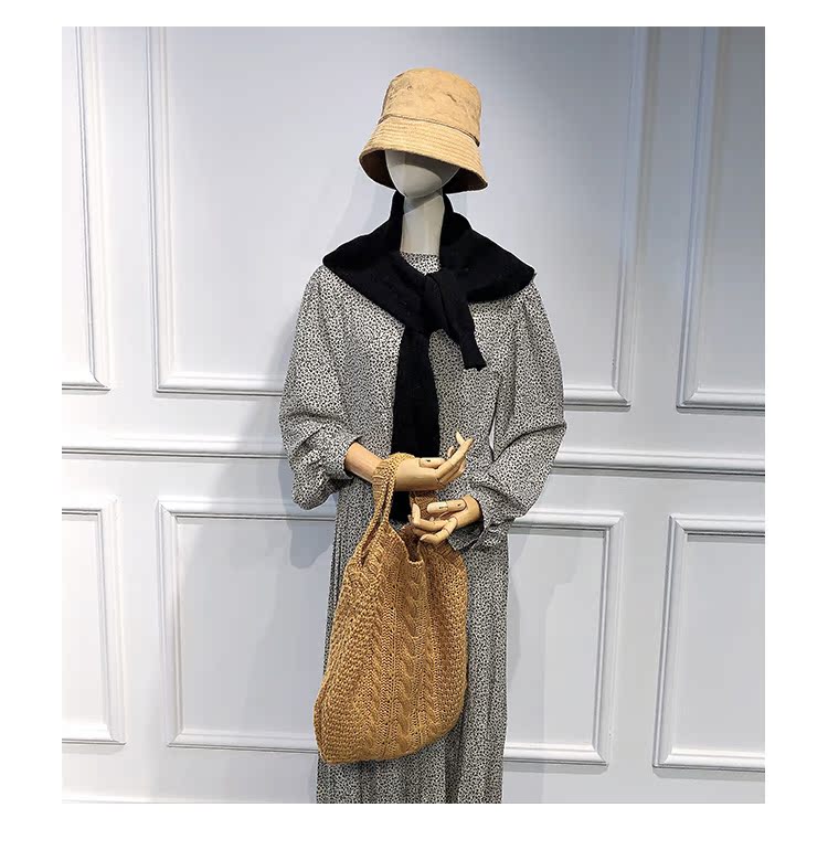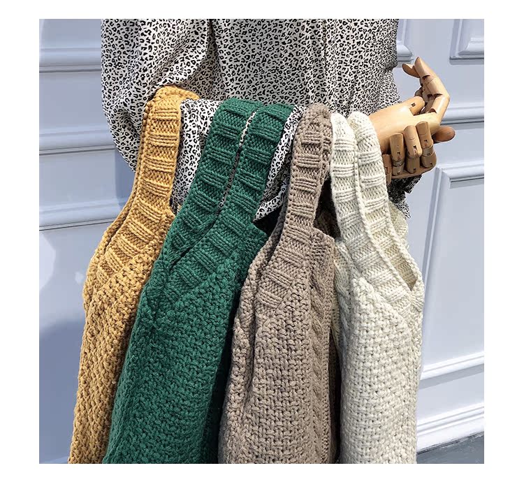 韓版新款ins針織購物袋休閑大容量女包包秋冬手提單肩編織毛線包1入