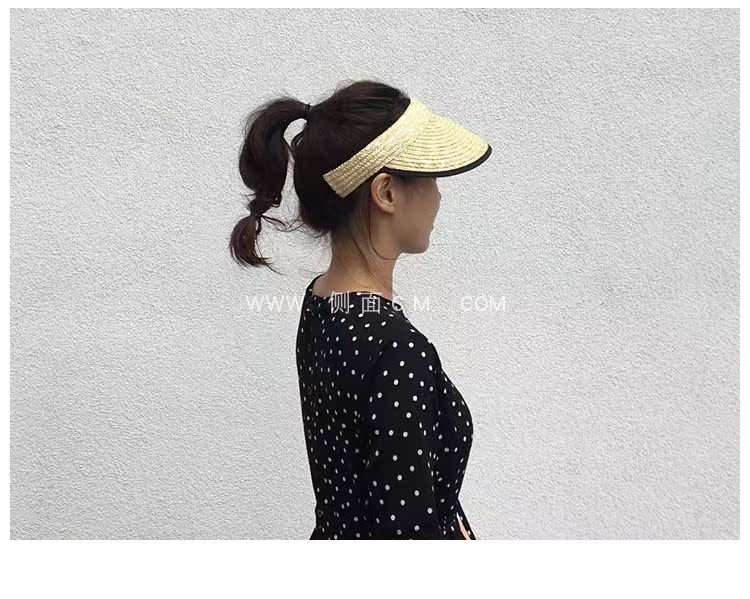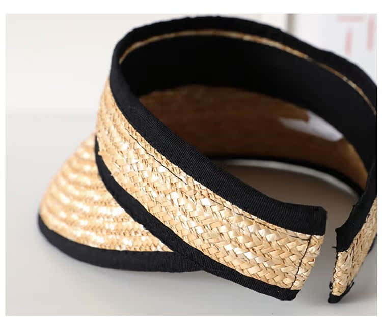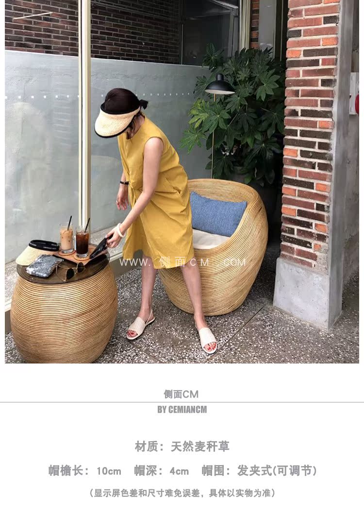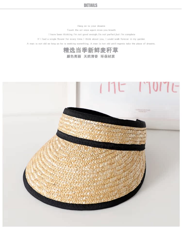 麥稈草空頂草帽女夏韓版ins時尚潮無頂遮陽帽防曬遮臉鴨舌太陽帽1入