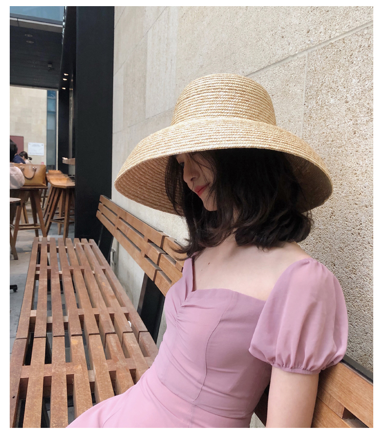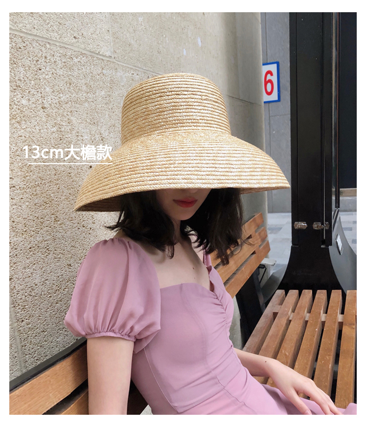 赫本風帽子女夏天防曬遮陽大檐草帽出游太陽帽海邊百搭度假沙灘帽1入