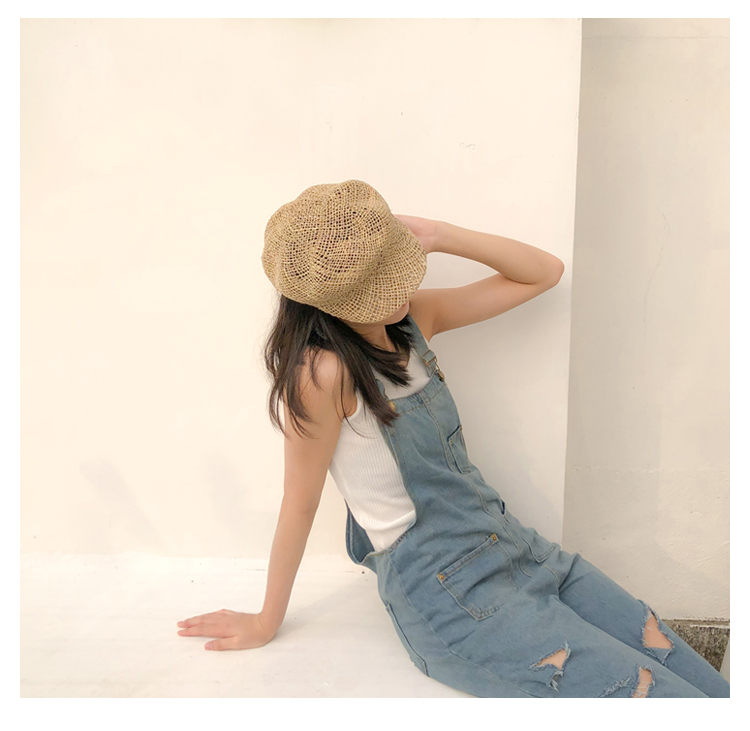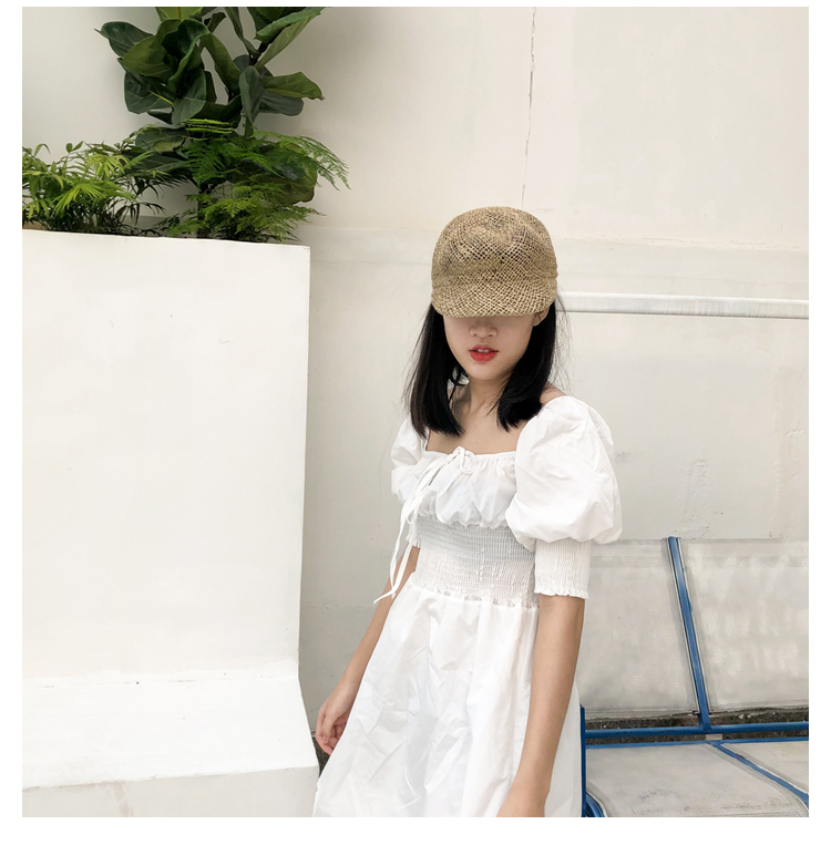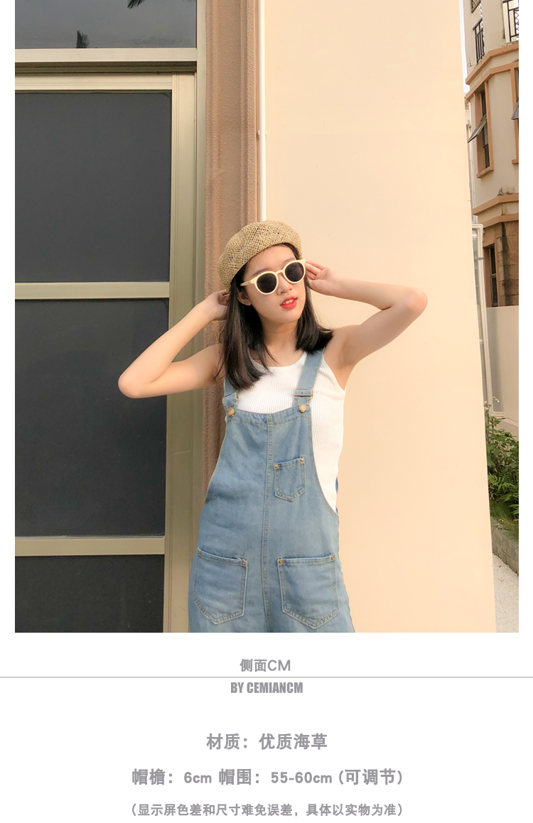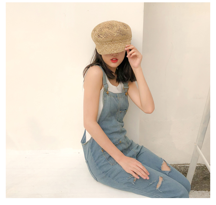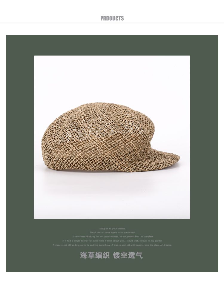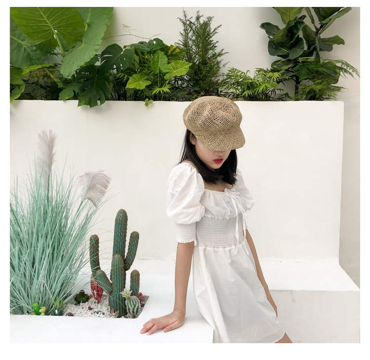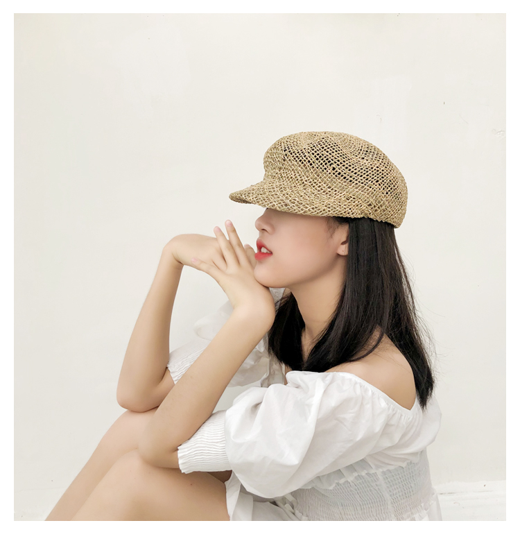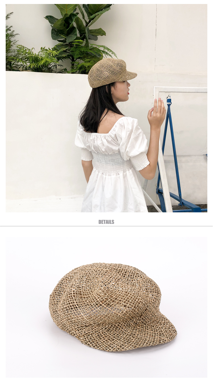 貝雷帽女夏季薄款透氣鏤空草編八角帽出游智仙生網紅同款鴨舌草帽1入
