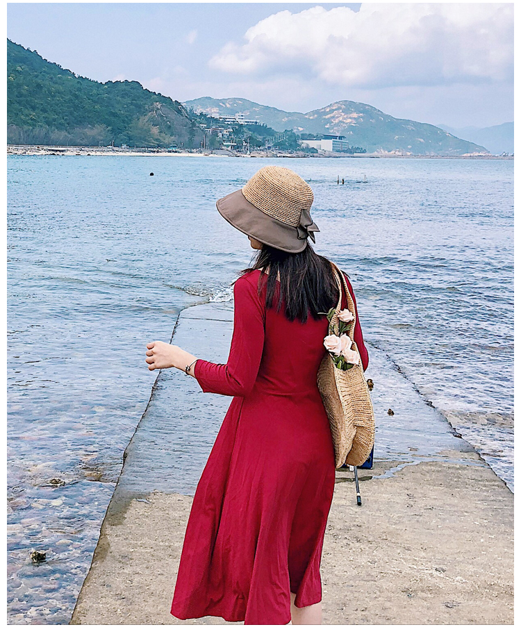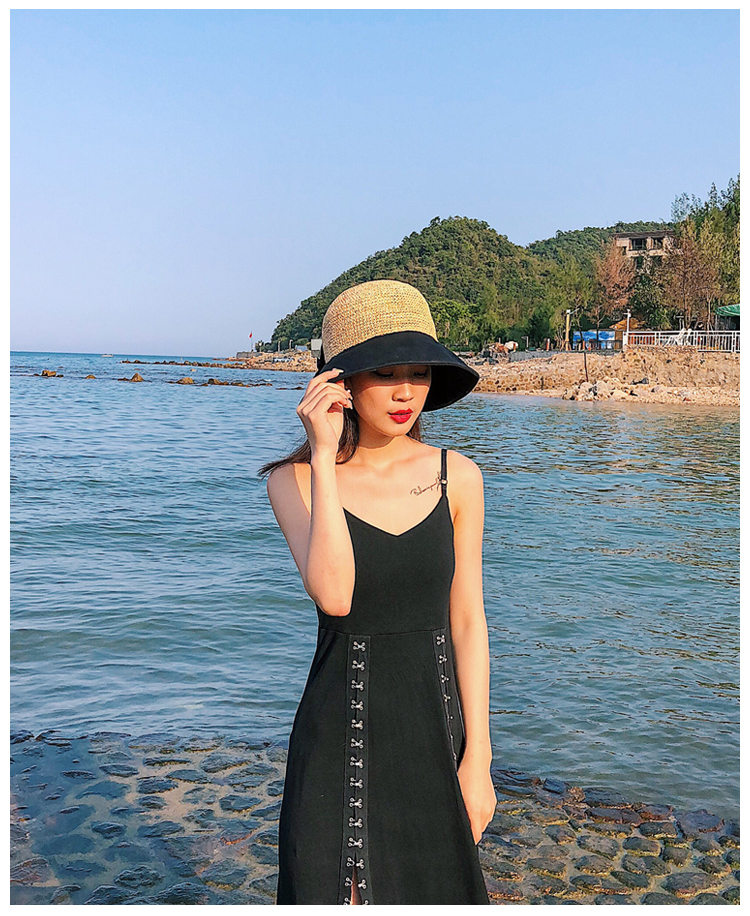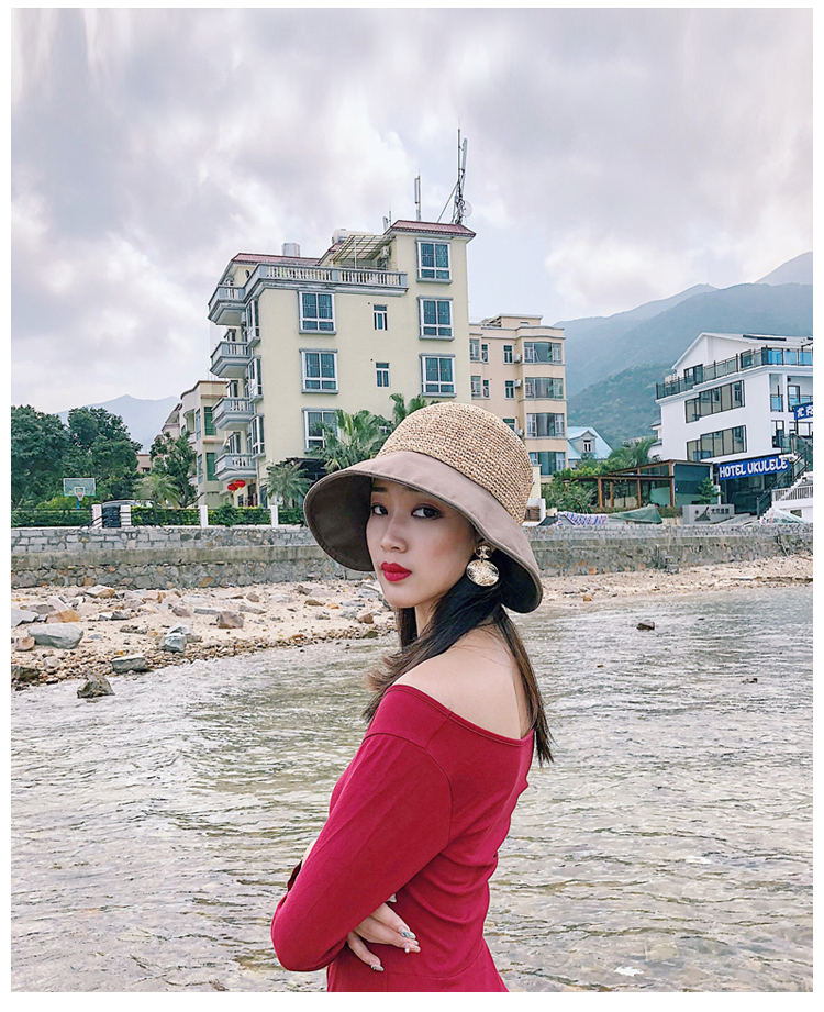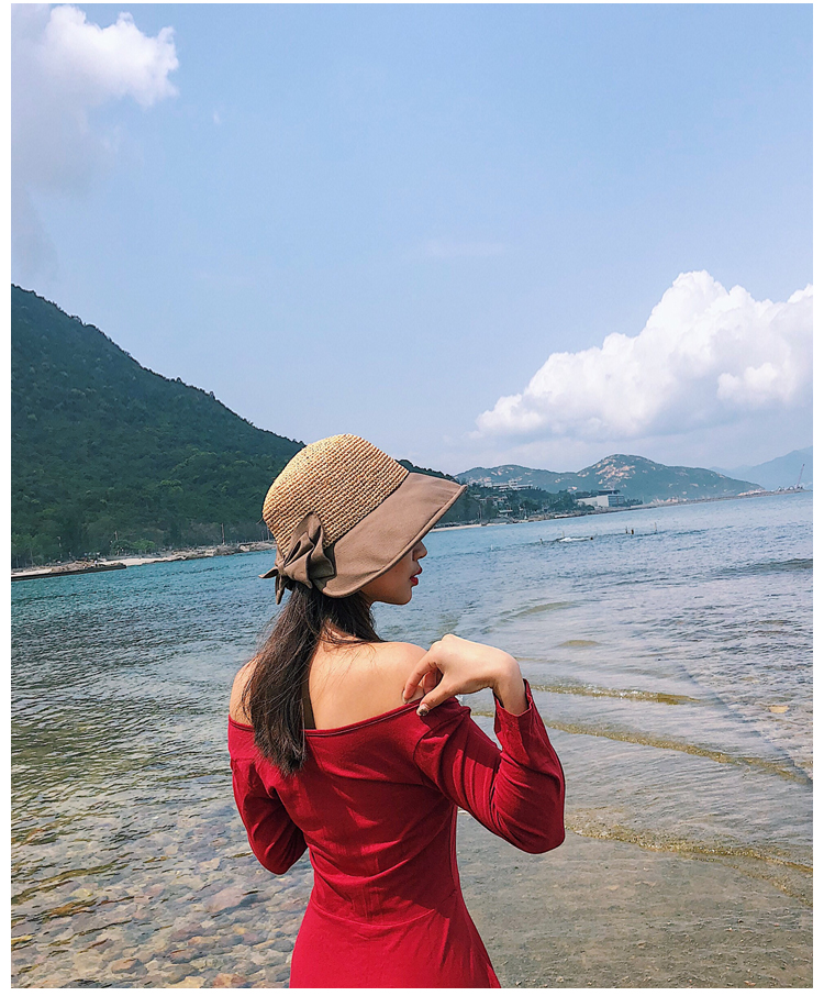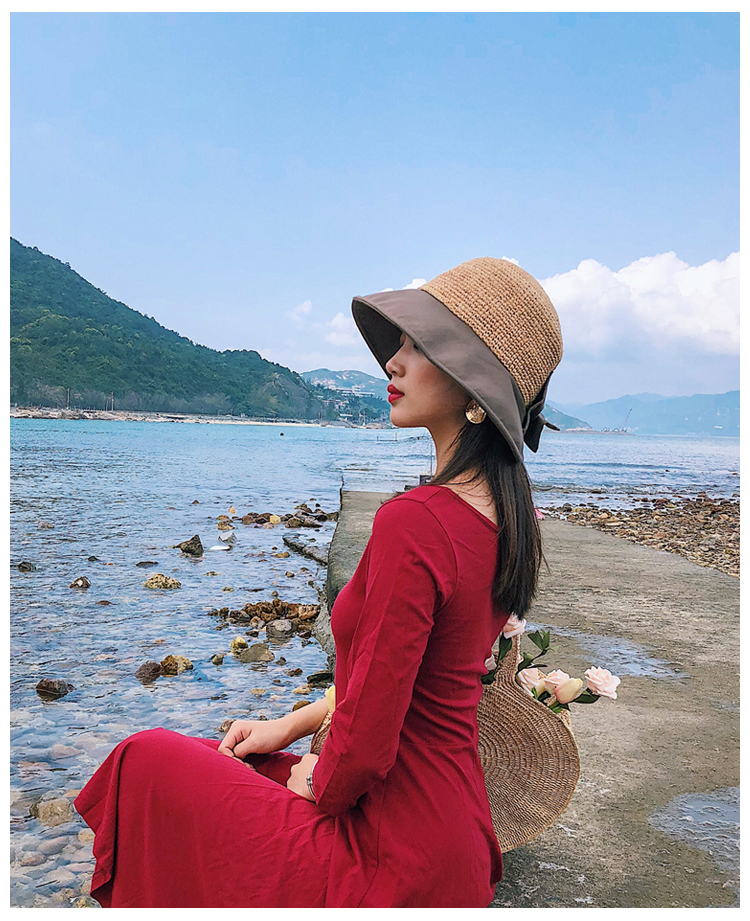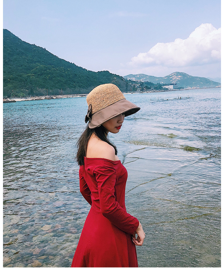 蝴蝶結拉菲草帽女夏韓版寬檐漁夫帽復古優雅防曬遮陽帽海邊沙灘帽1入