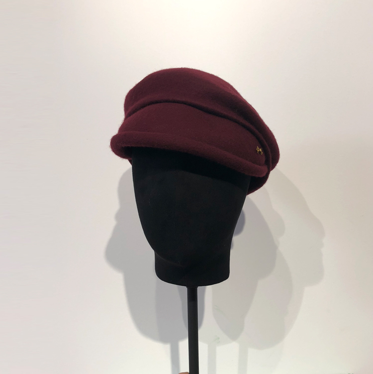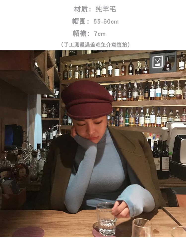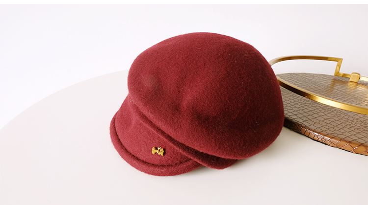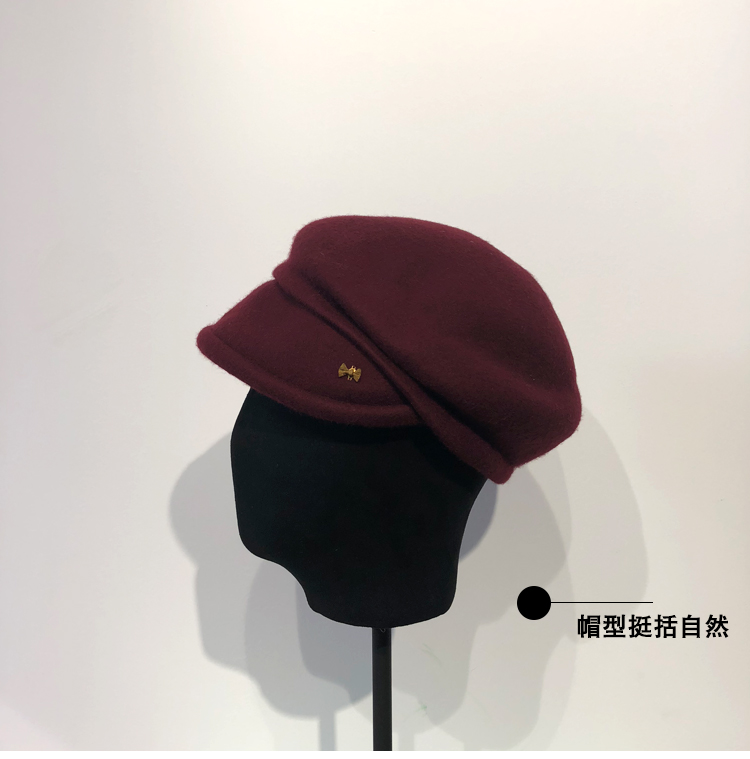 酒紅色羊毛呢貝雷帽女冬季韓版時尚新款優雅鴨舌帽八角褶皺蓓蕾帽1入
