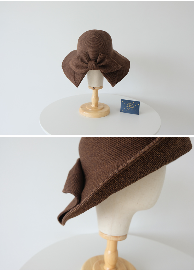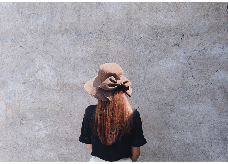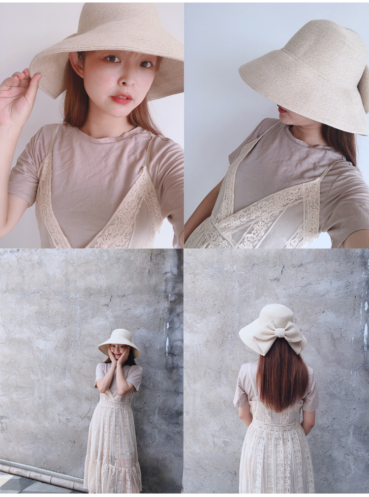 防曬帽子女夏韓國可折疊休閑度假蝴蝶結漁夫帽優雅大帽檐遮陽帽1入