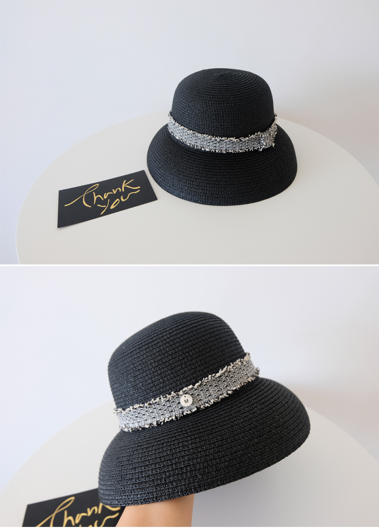 赫本盆帽草帽女夏天小清新沙灘帽海邊度假時尚防曬遮陽帽出游帽子1入