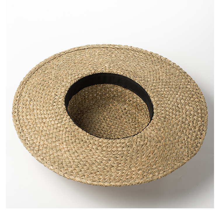 【海草帽】歐美英倫風平頂寬檐禮帽時尚草帽女夏天海邊度假沙灘帽1入