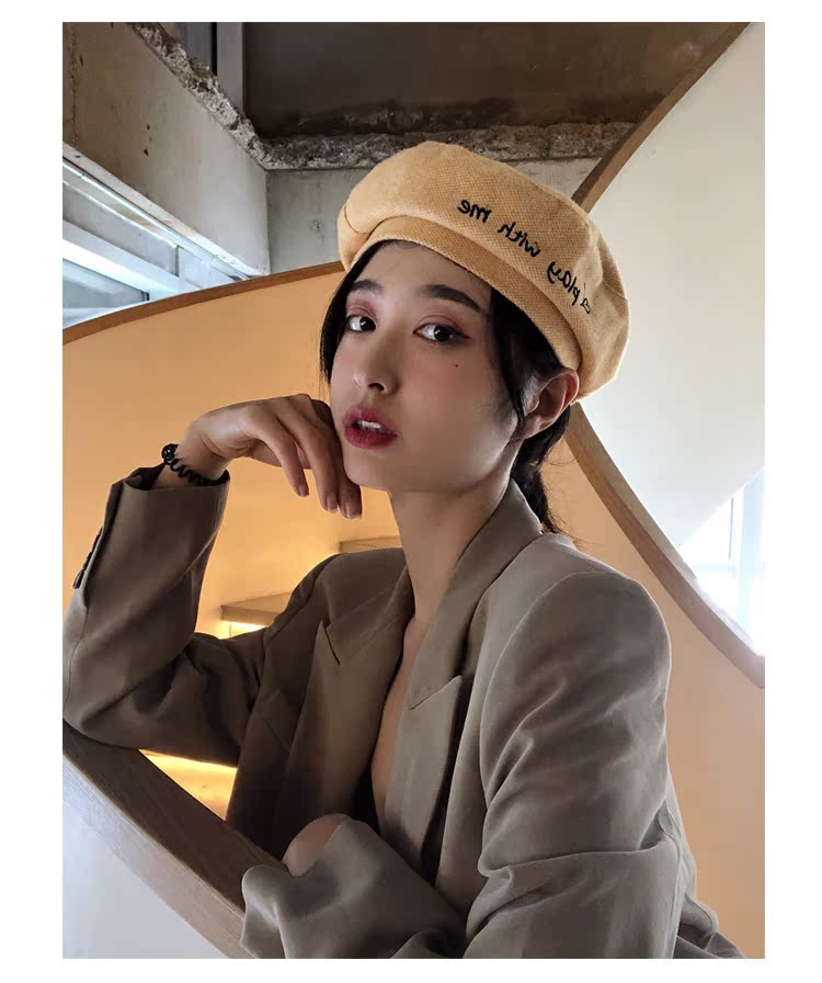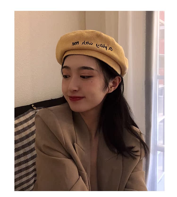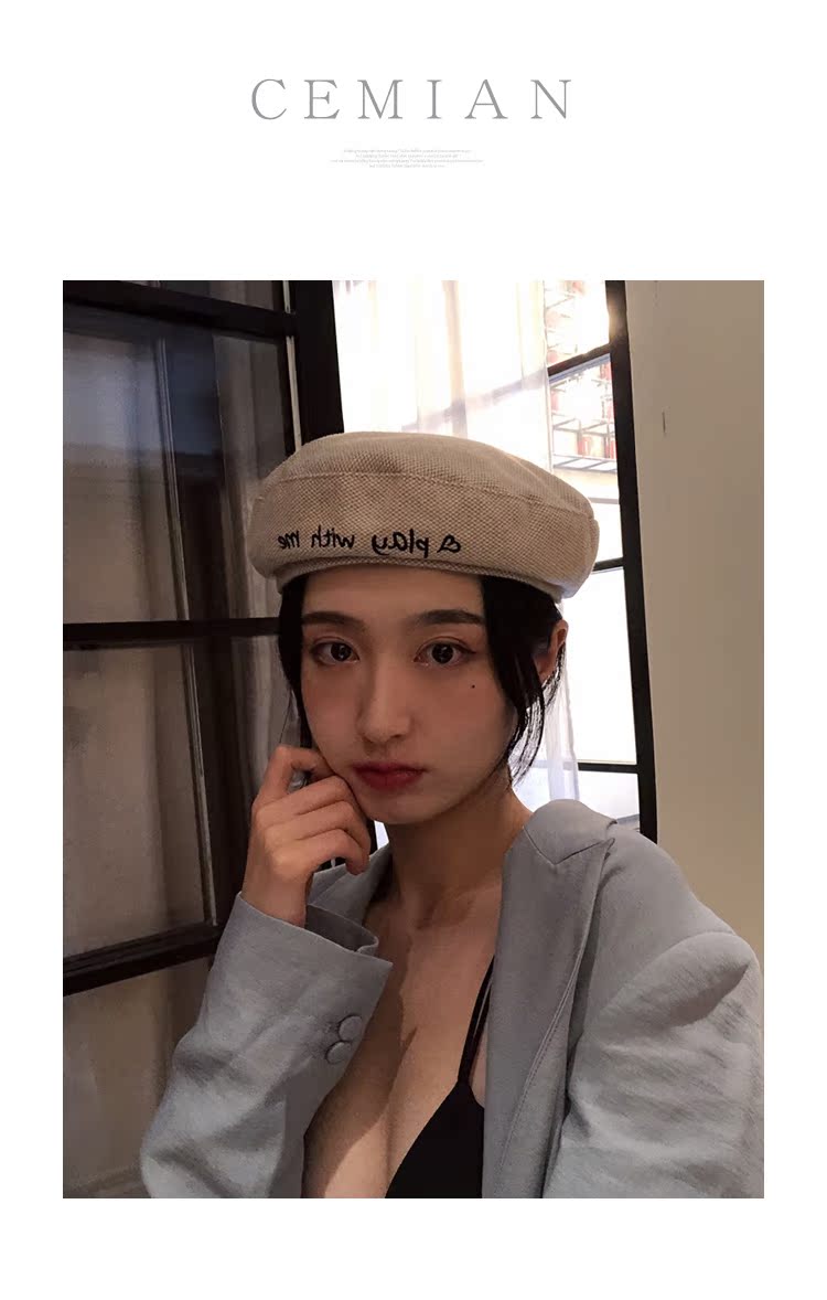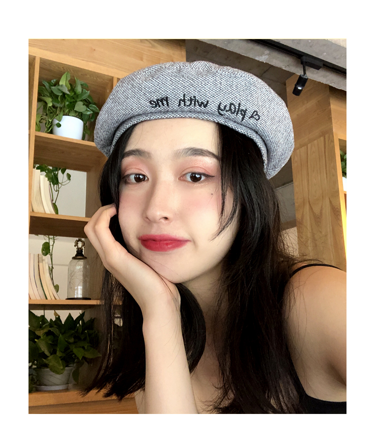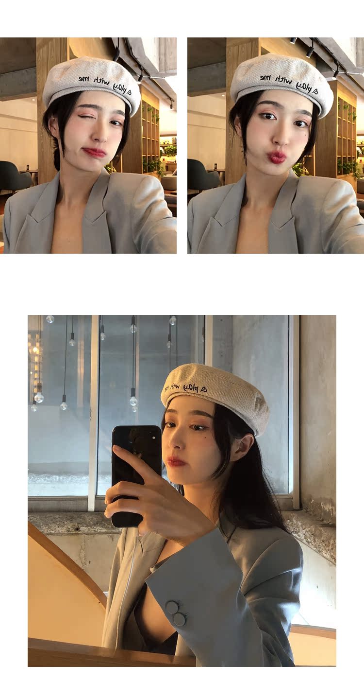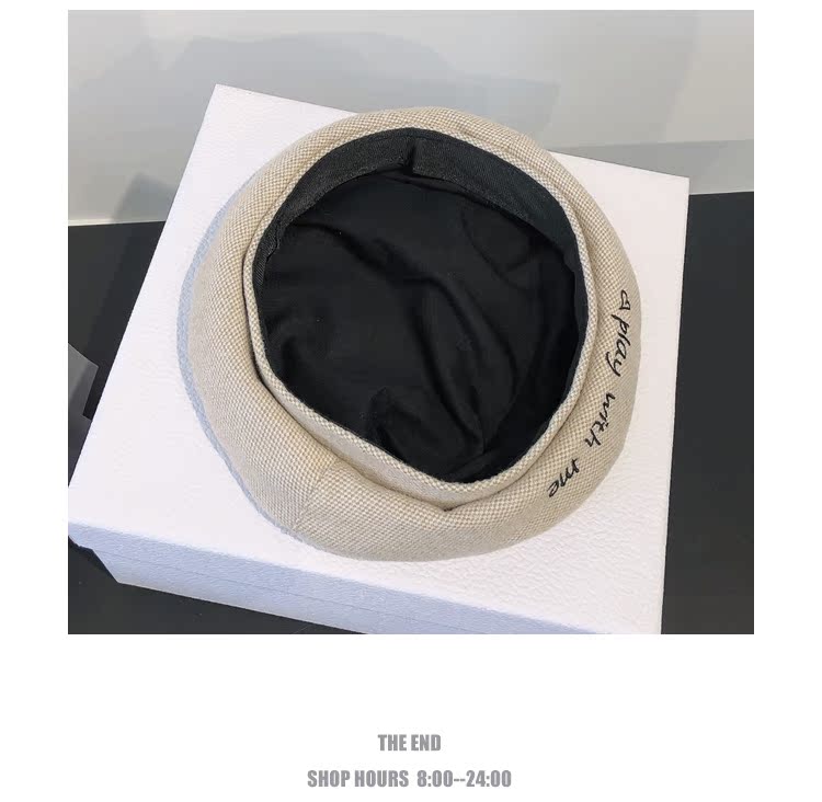 貝雷帽女秋冬韓版ins百搭字母刺繡畫家帽日系文藝格紋平頂蓓蕾帽1入