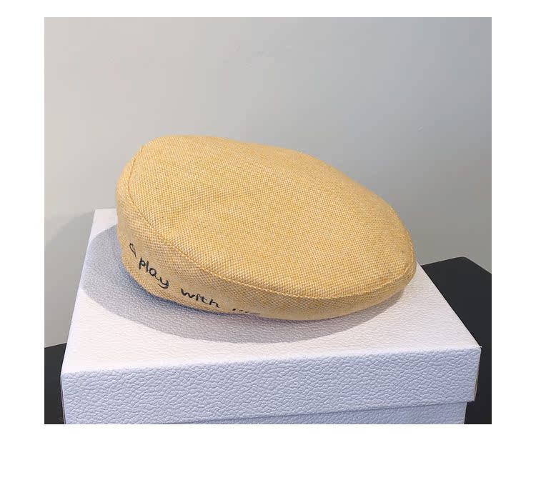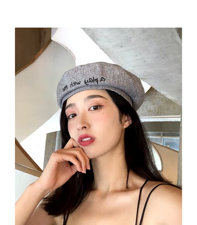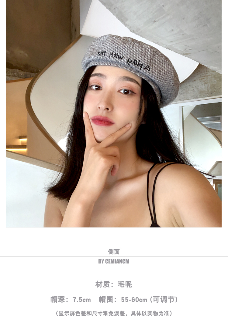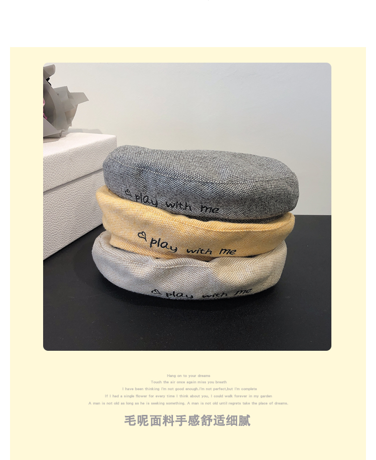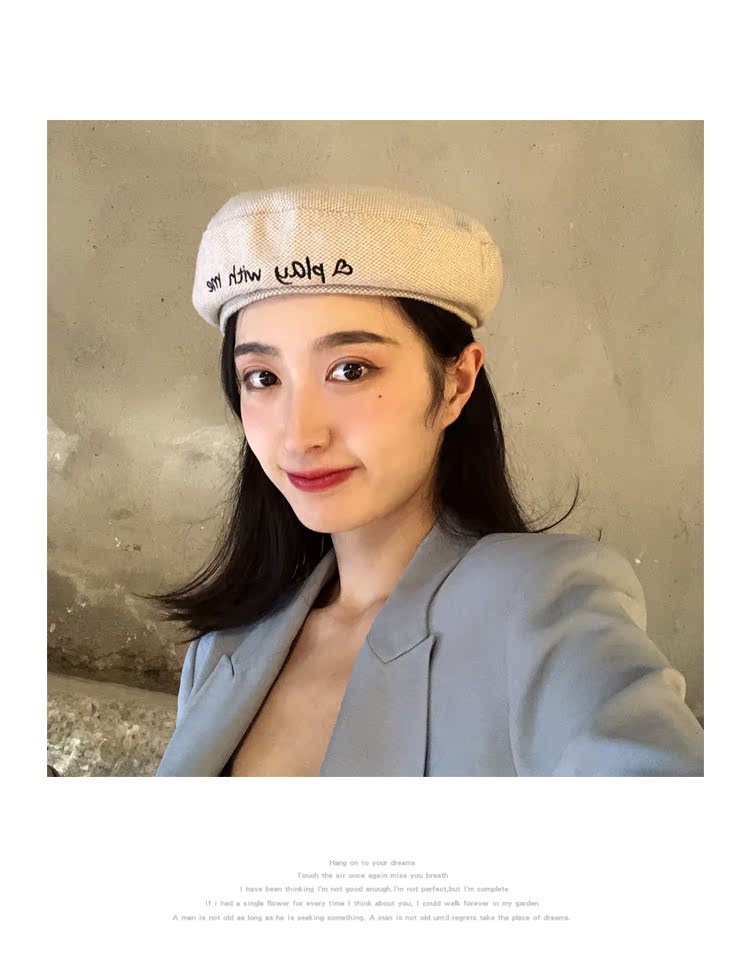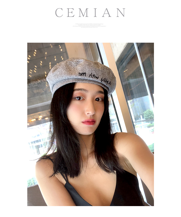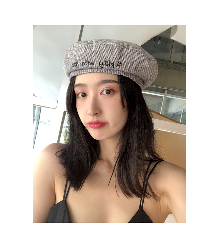貝雷帽女秋冬韓版ins百搭字母刺繡畫家帽日系文藝格紋平頂蓓蕾帽1入