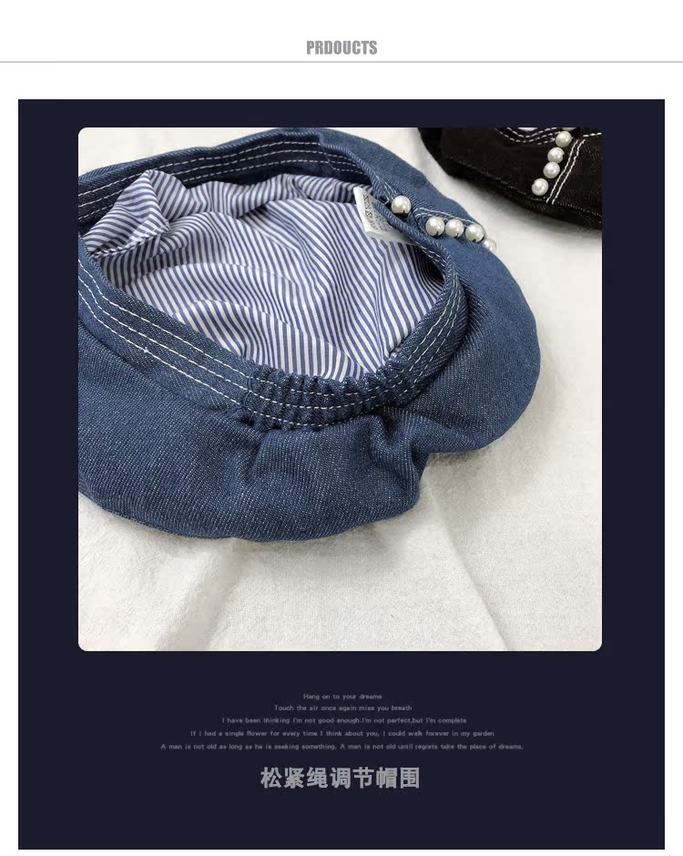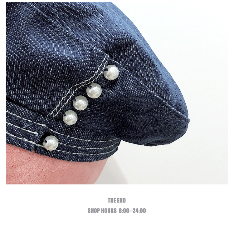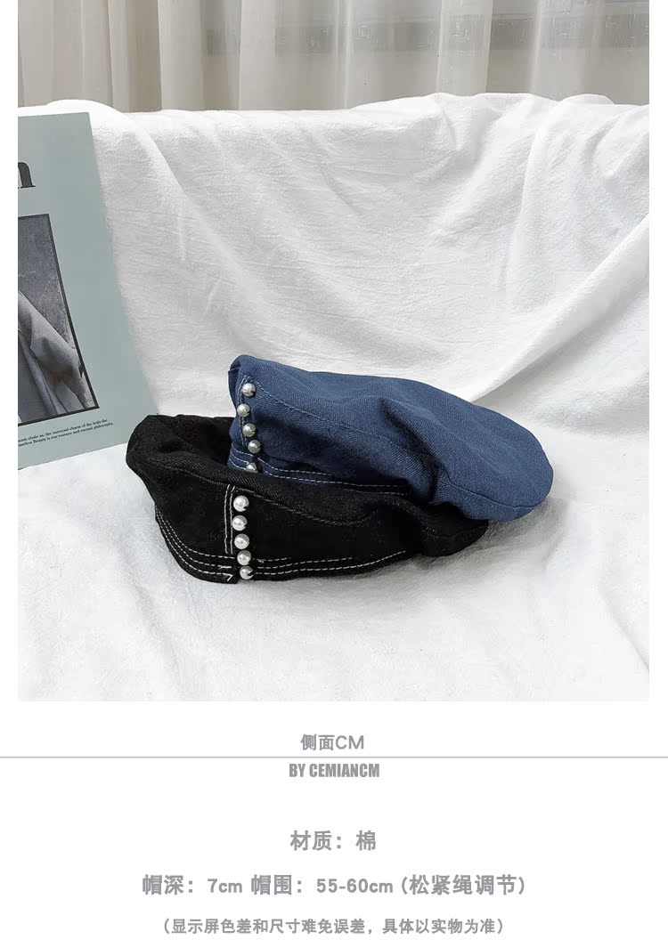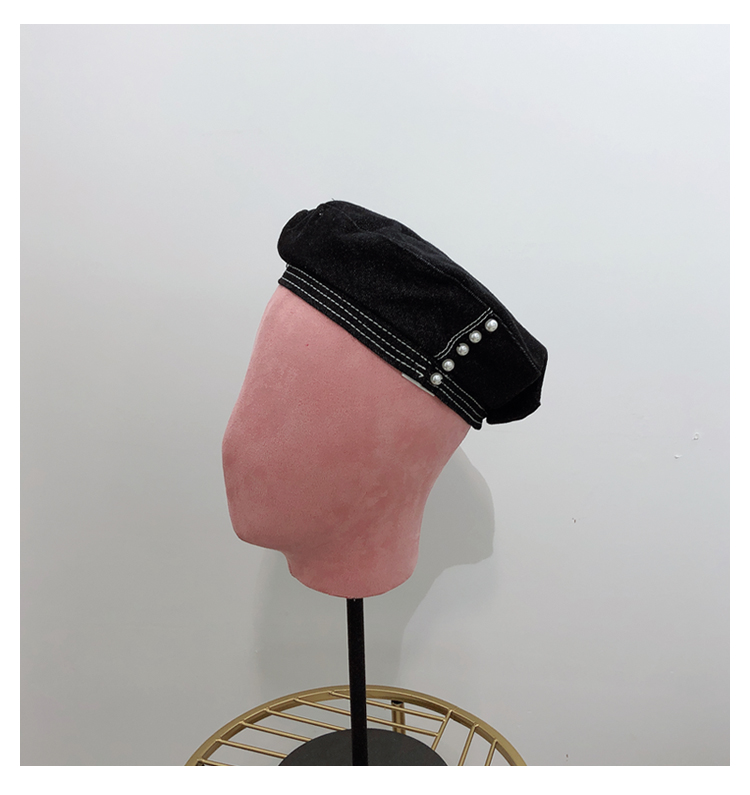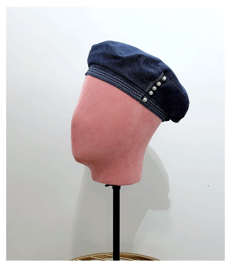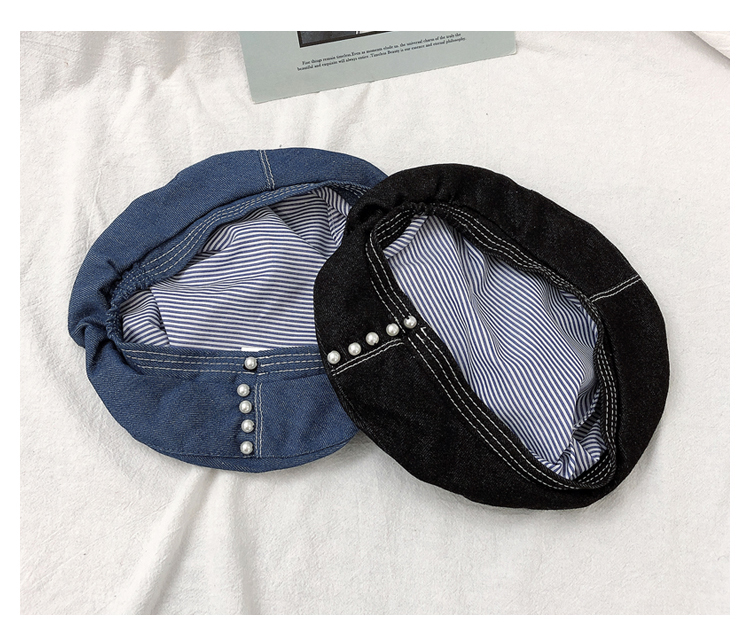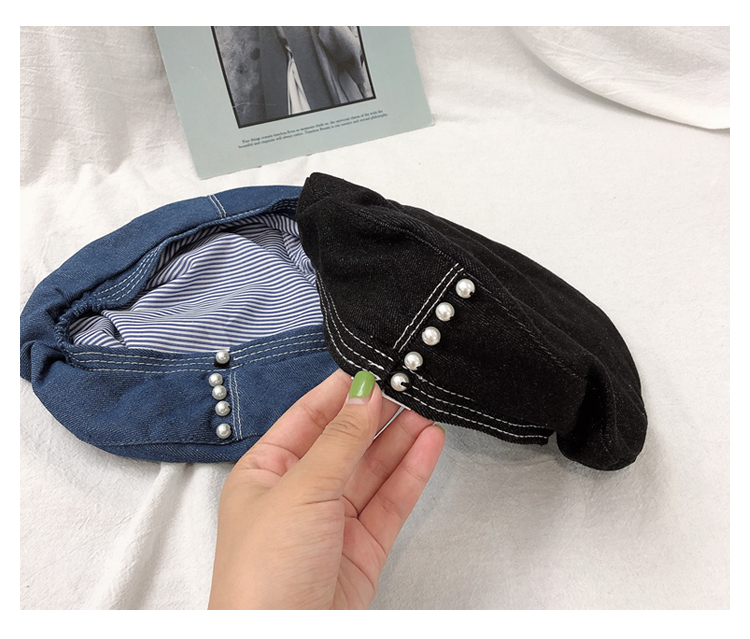 貝雷帽子女士復古牛仔韓版潮時尚休閑優雅報童帽珍珠蓓蕾帽畫家帽1入
