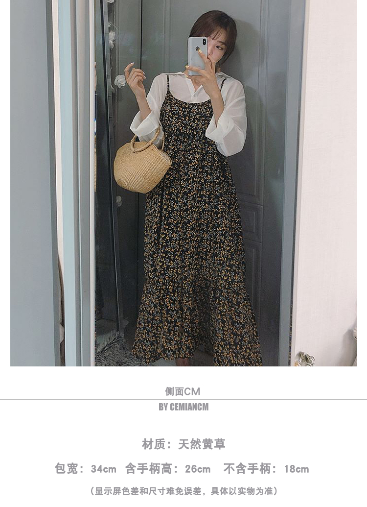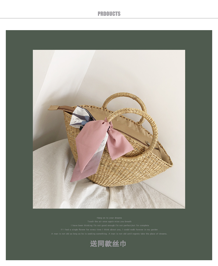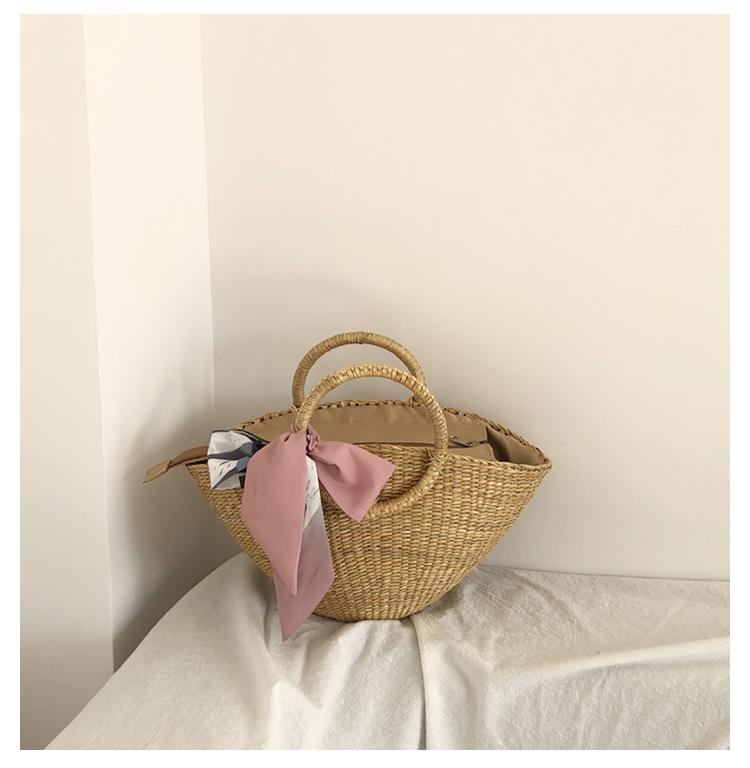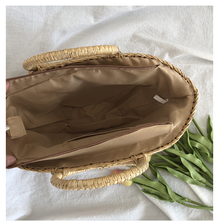 韓版ins簡約雙把手手提餃子包手編夏日沙灘包女草包編織包森女包1入
