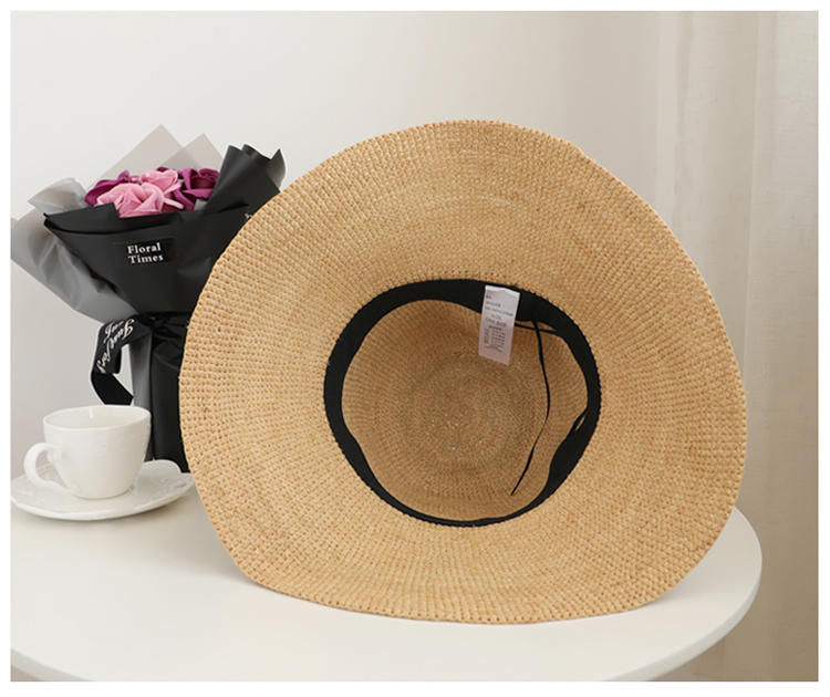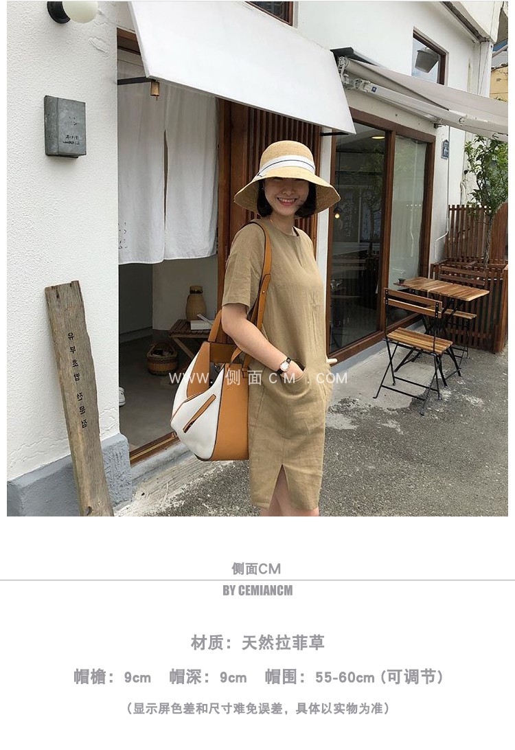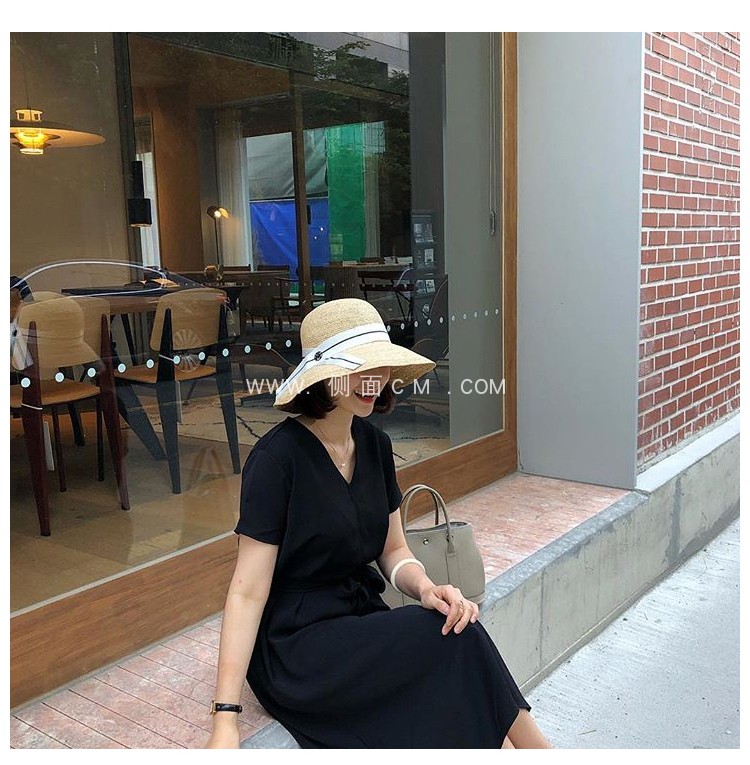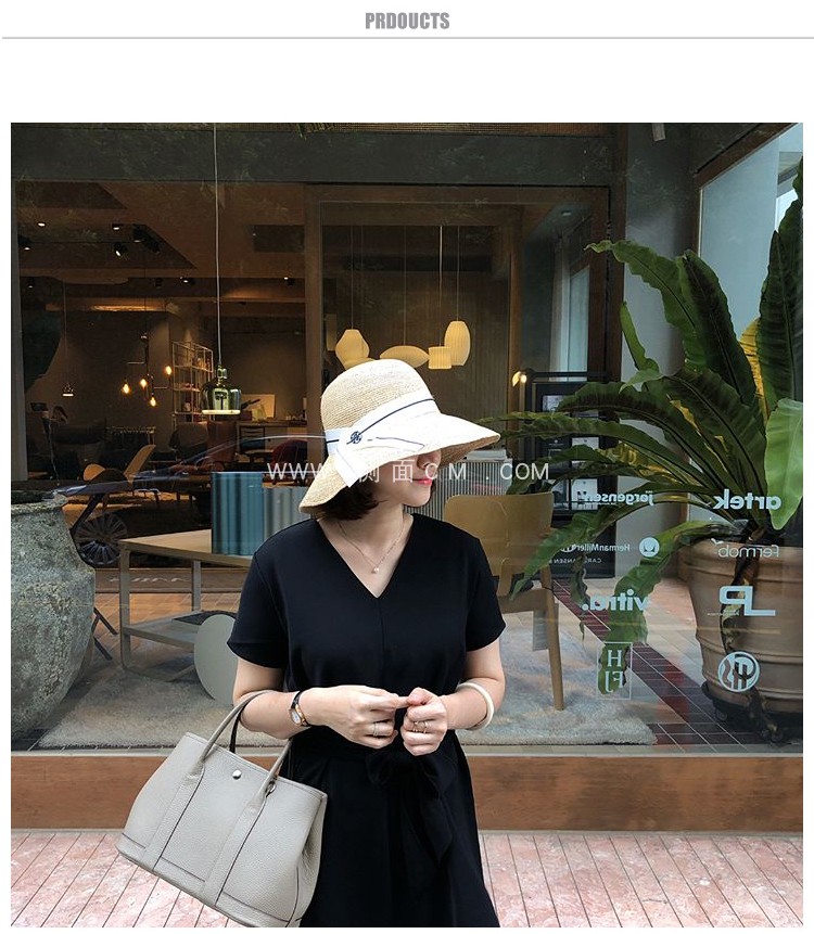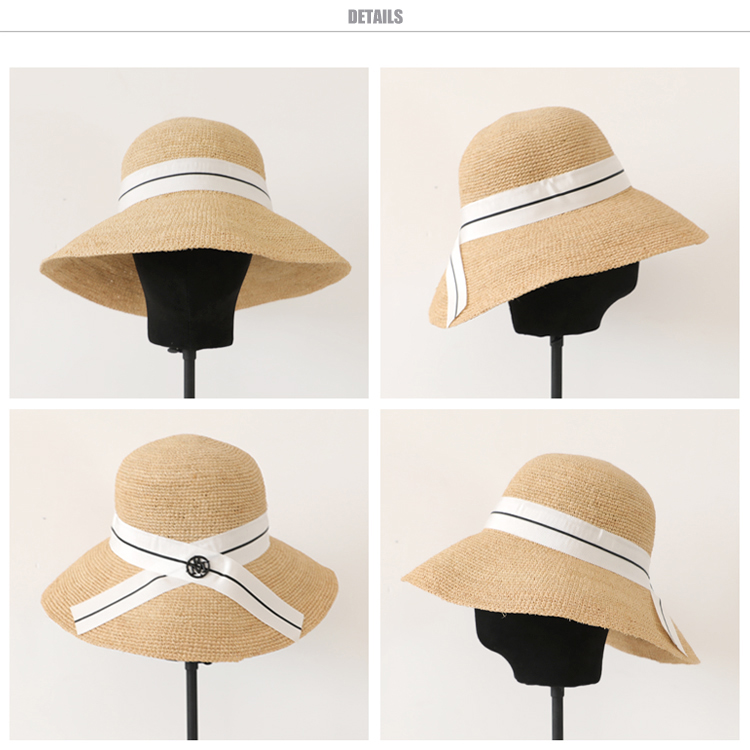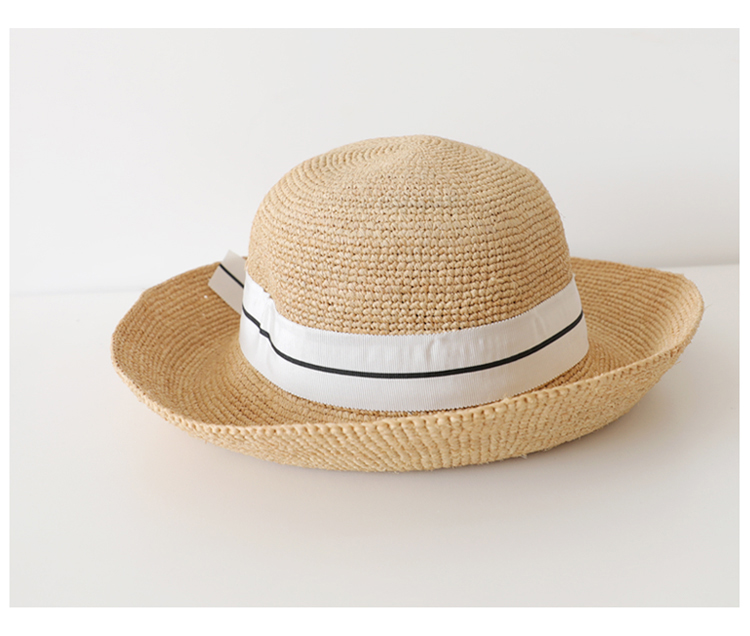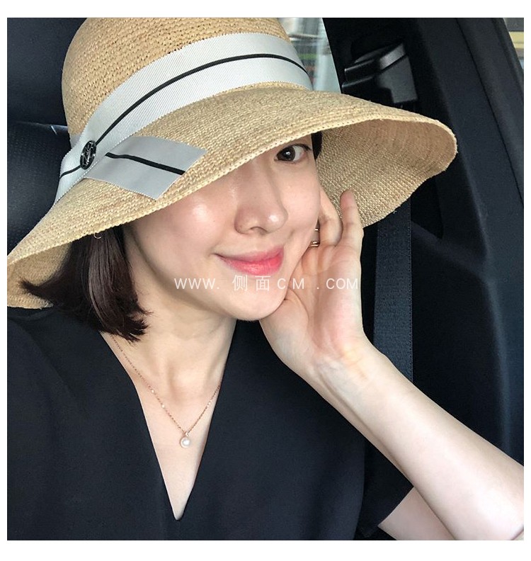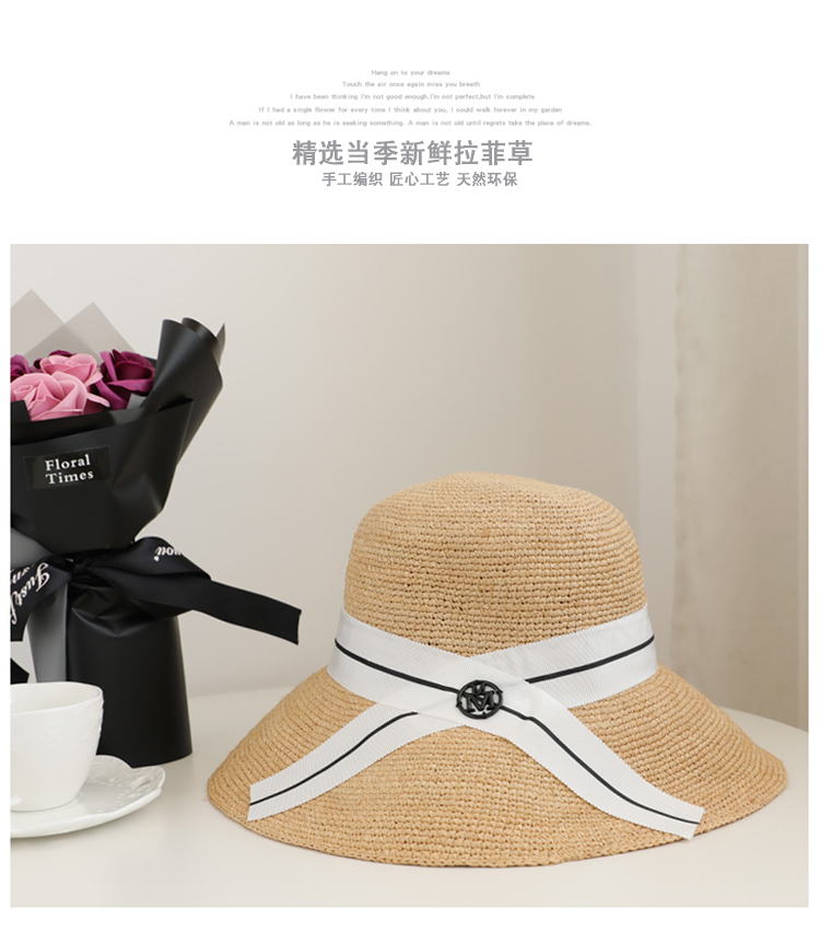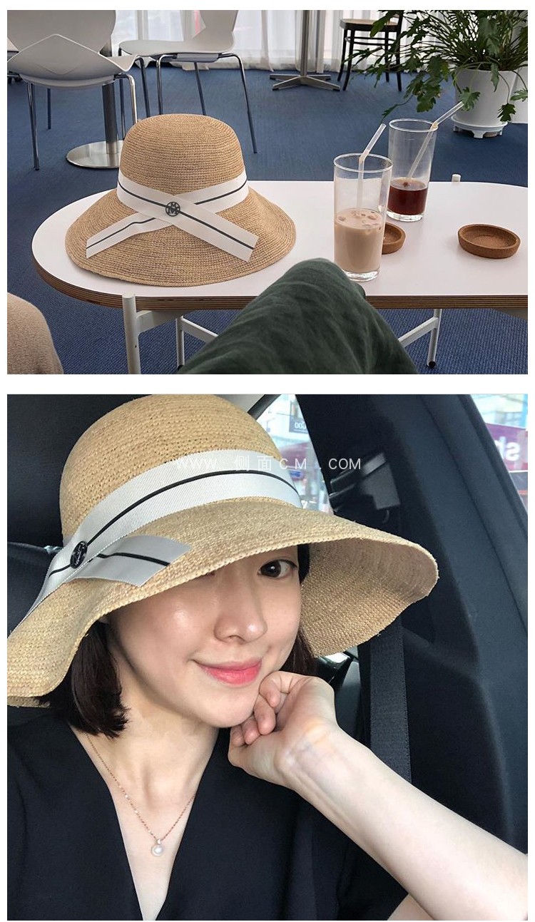蝴蝶結拉菲草帽女夏可折疊出游圓頂寬檐漁夫帽韓版百搭海邊沙灘帽1入