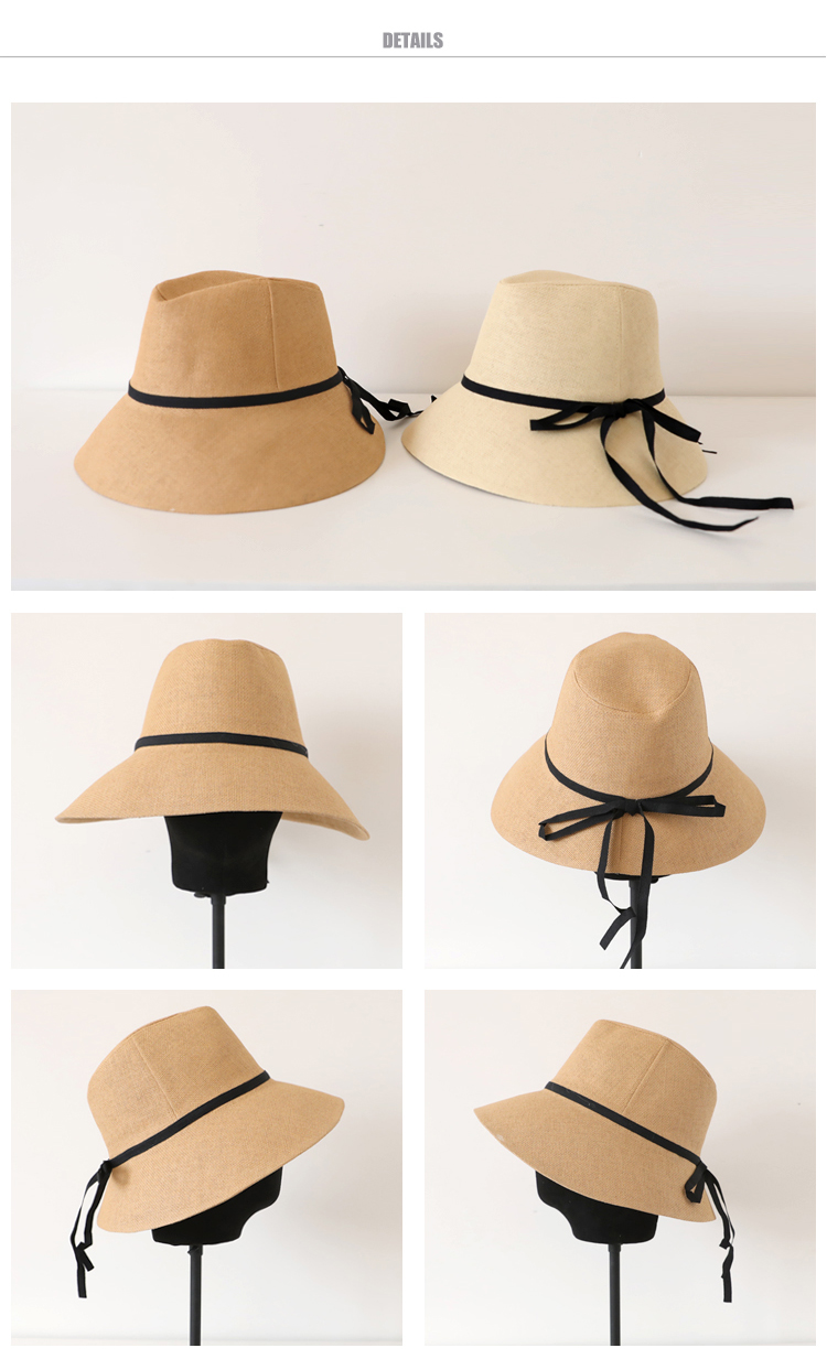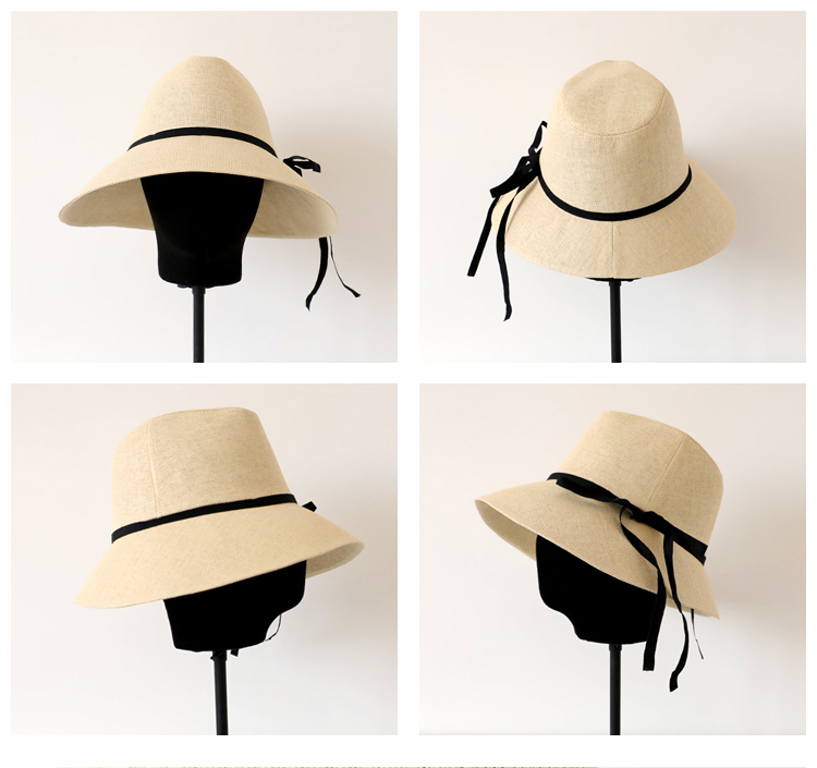 韓國小眾設計師蝴蝶結透氣爵士頂白色寬檐漁夫帽女夏日系防曬草帽1入