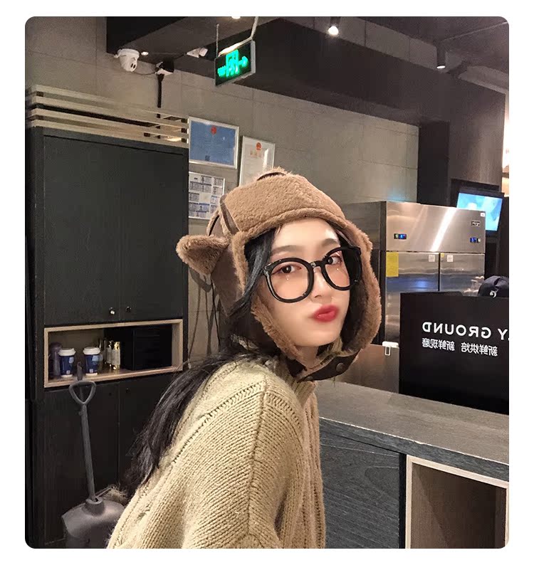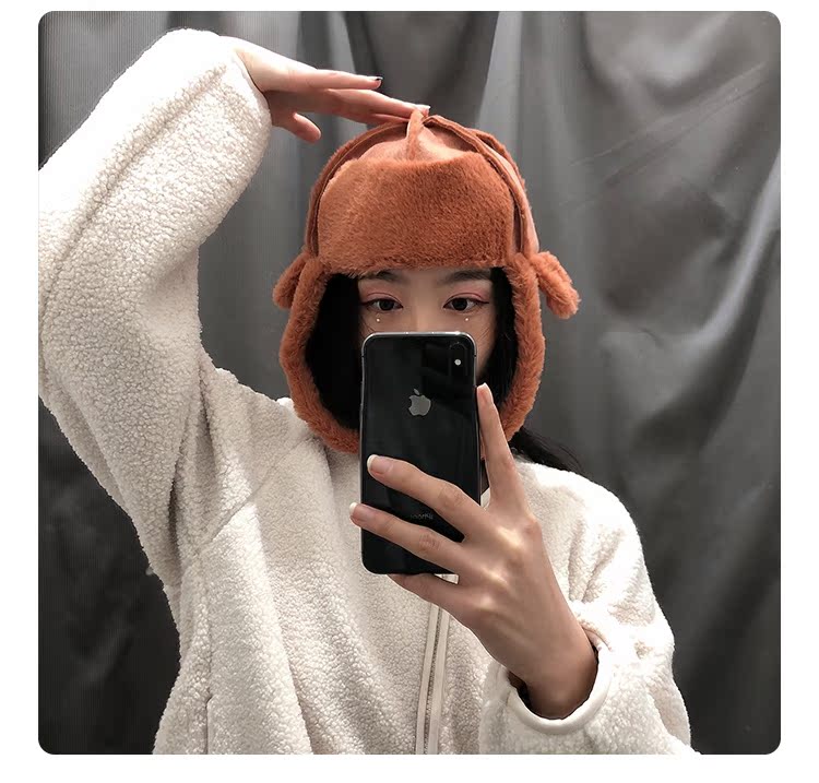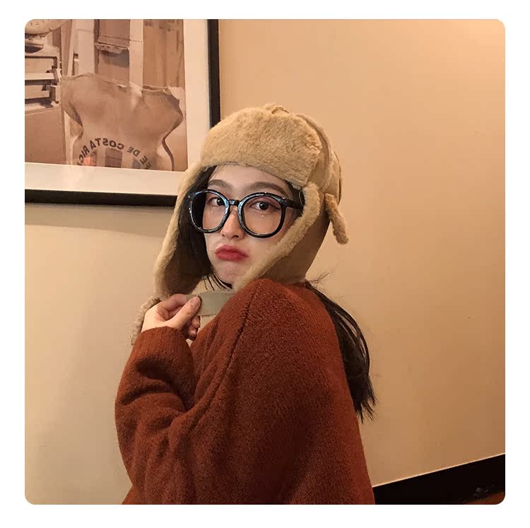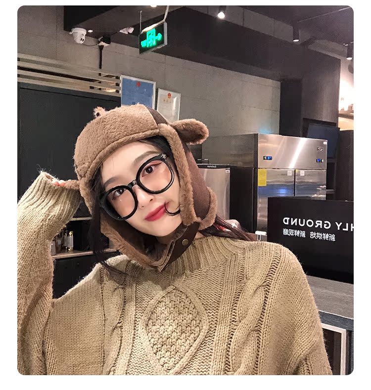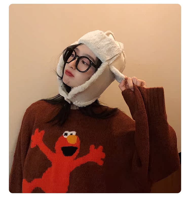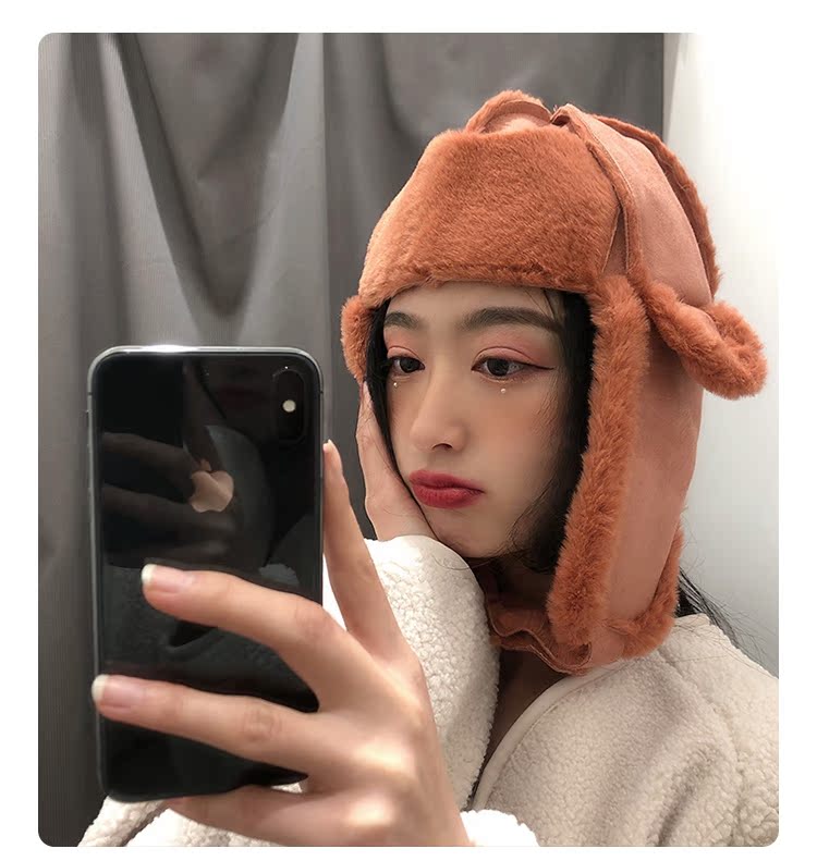 麂皮絨雷鋒女韓版可愛百搭冬天防寒保暖護耳滑雪帽時尚加絨飛行帽1入