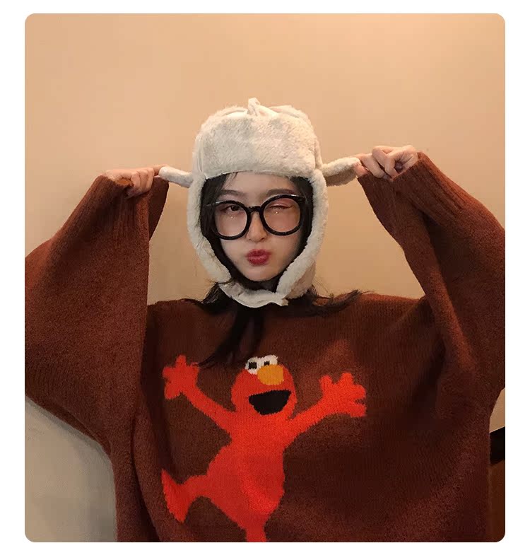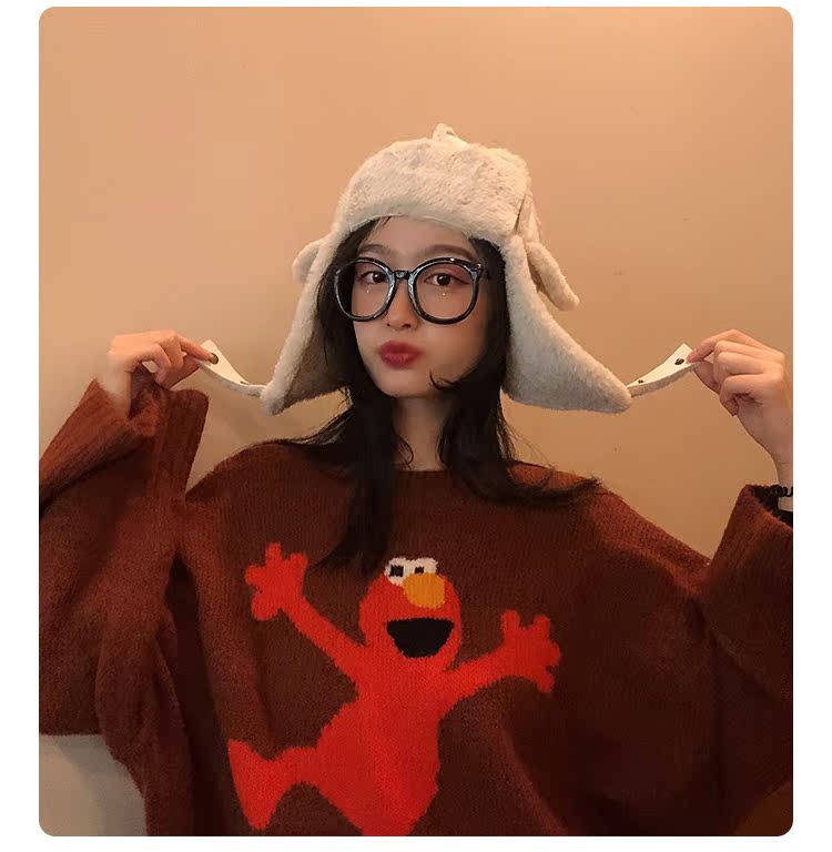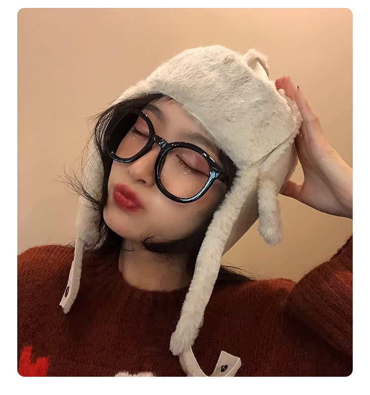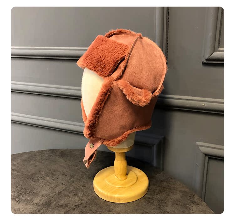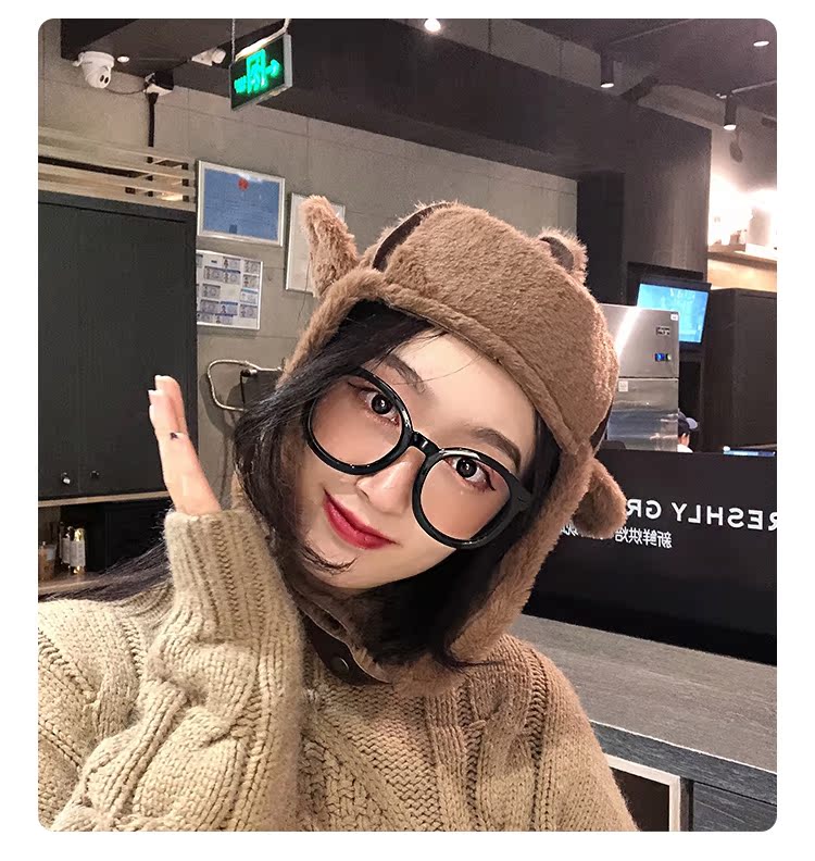 麂皮絨雷鋒女韓版可愛百搭冬天防寒保暖護耳滑雪帽時尚加絨飛行帽1入