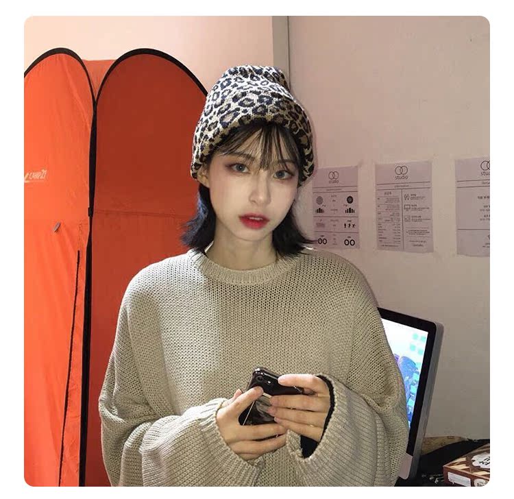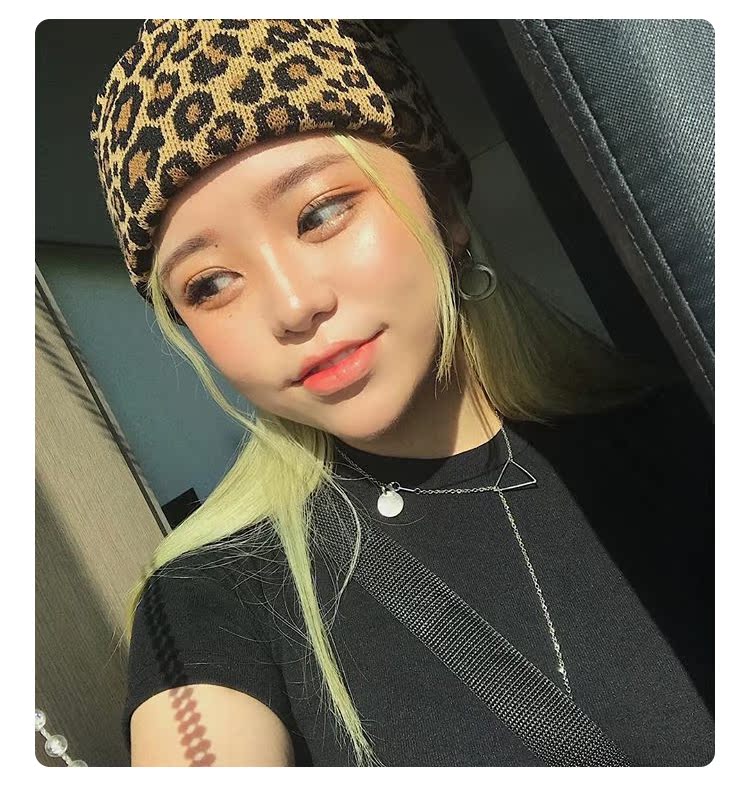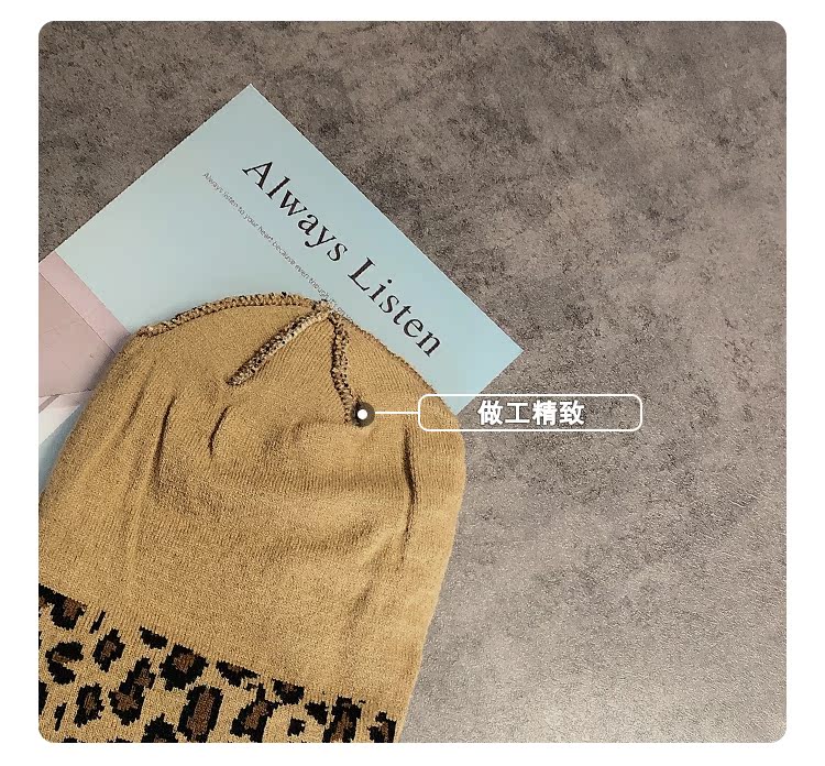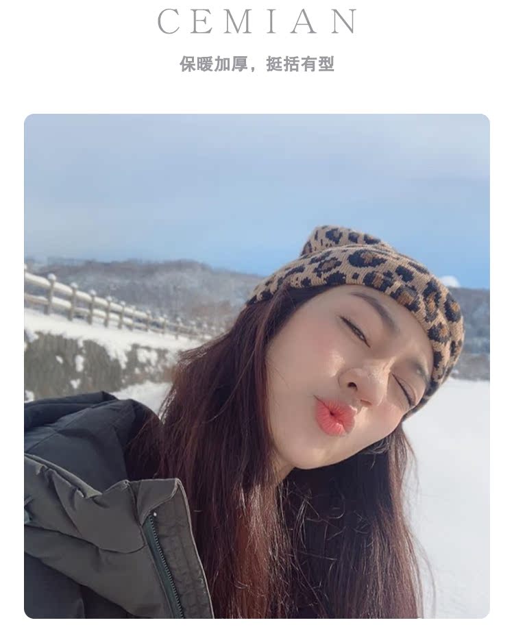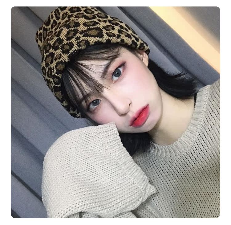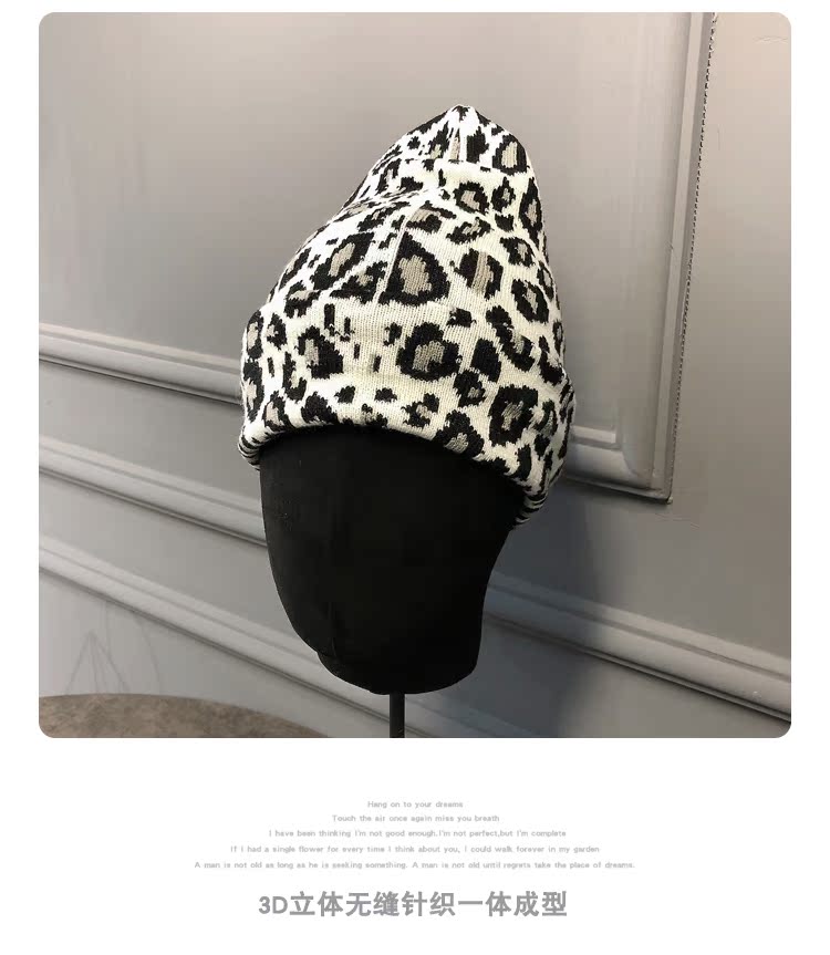豹紋毛線帽女冬潮韓國加厚保暖套頭帽秋冬日系翻邊冷帽針織帽ins1入