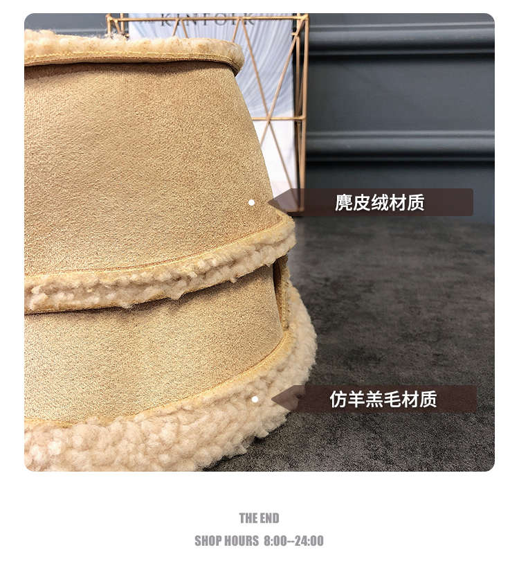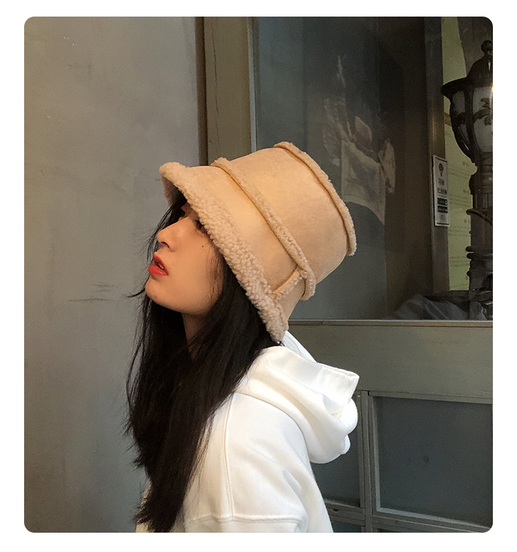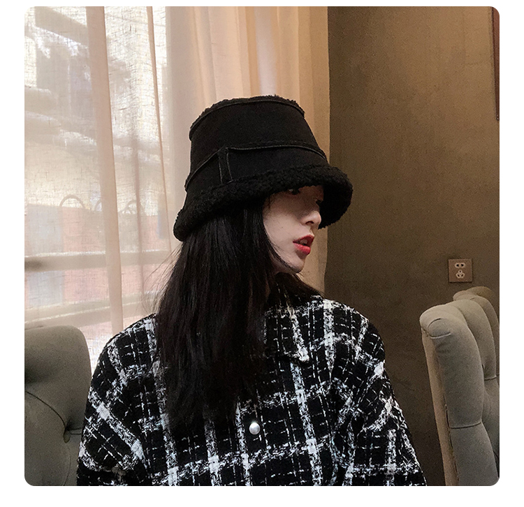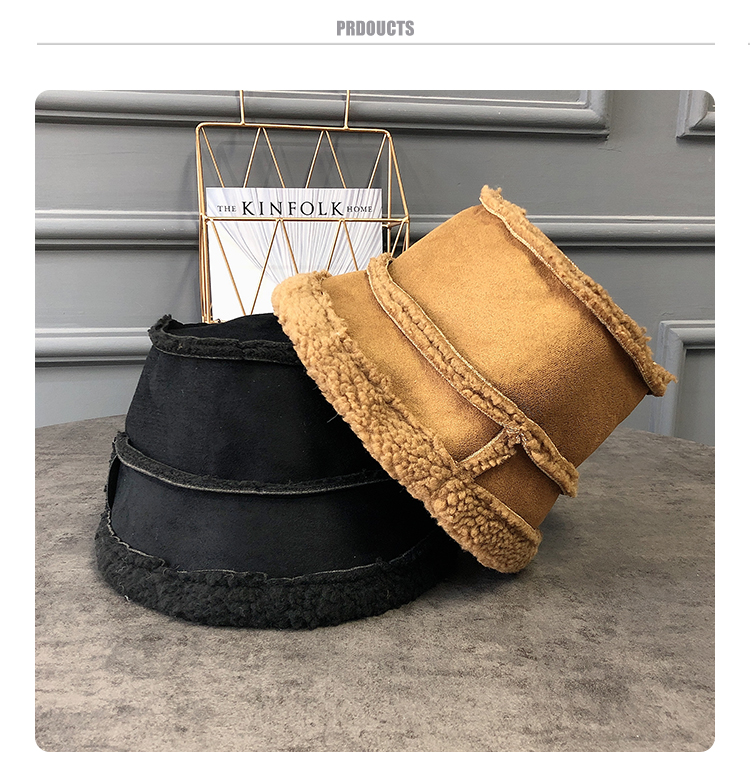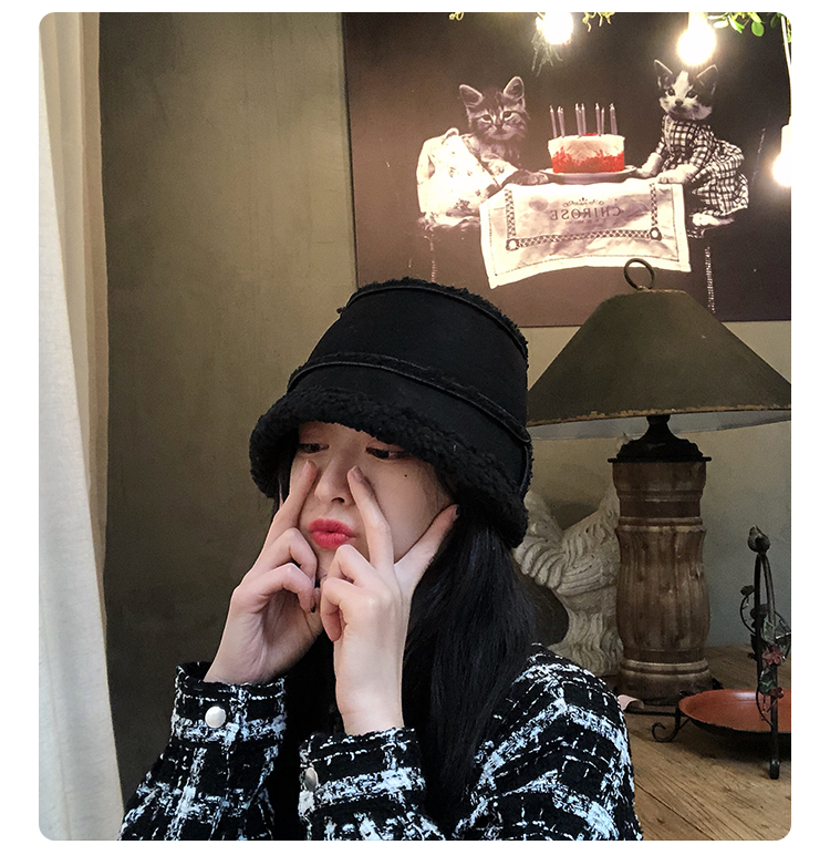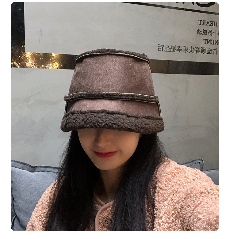 麂皮絨網紅漁夫帽女秋冬新款韓版百搭日系冬季保暖水桶帽毛絨盆帽1入