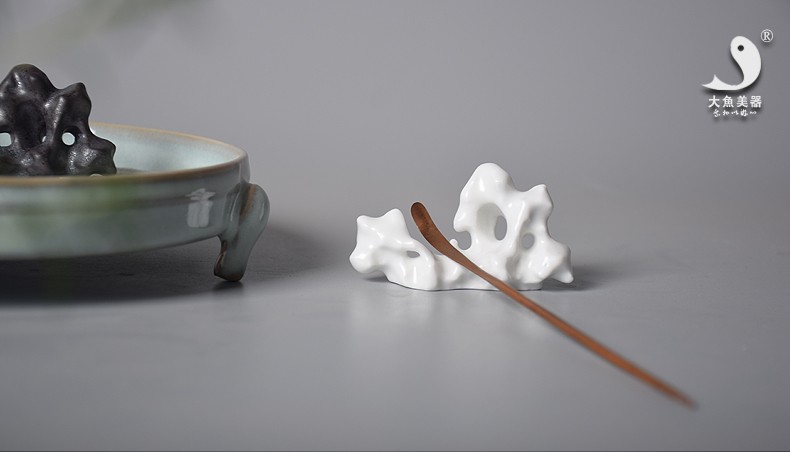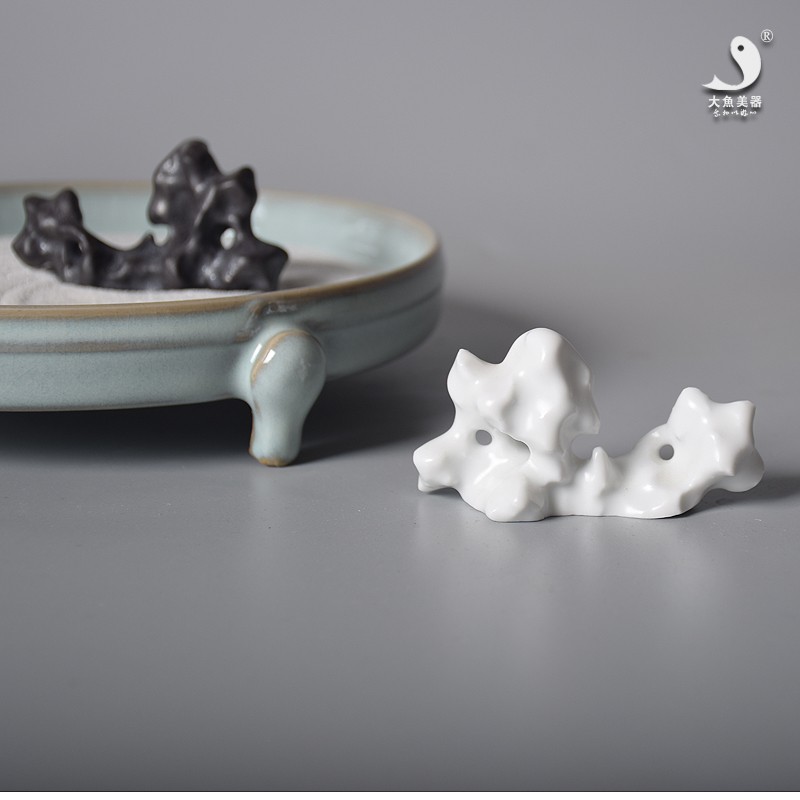 陶瓷太湖石小擺件仿天然石頭山子枯山水配件盆景筆架山筷子架茶寵1入