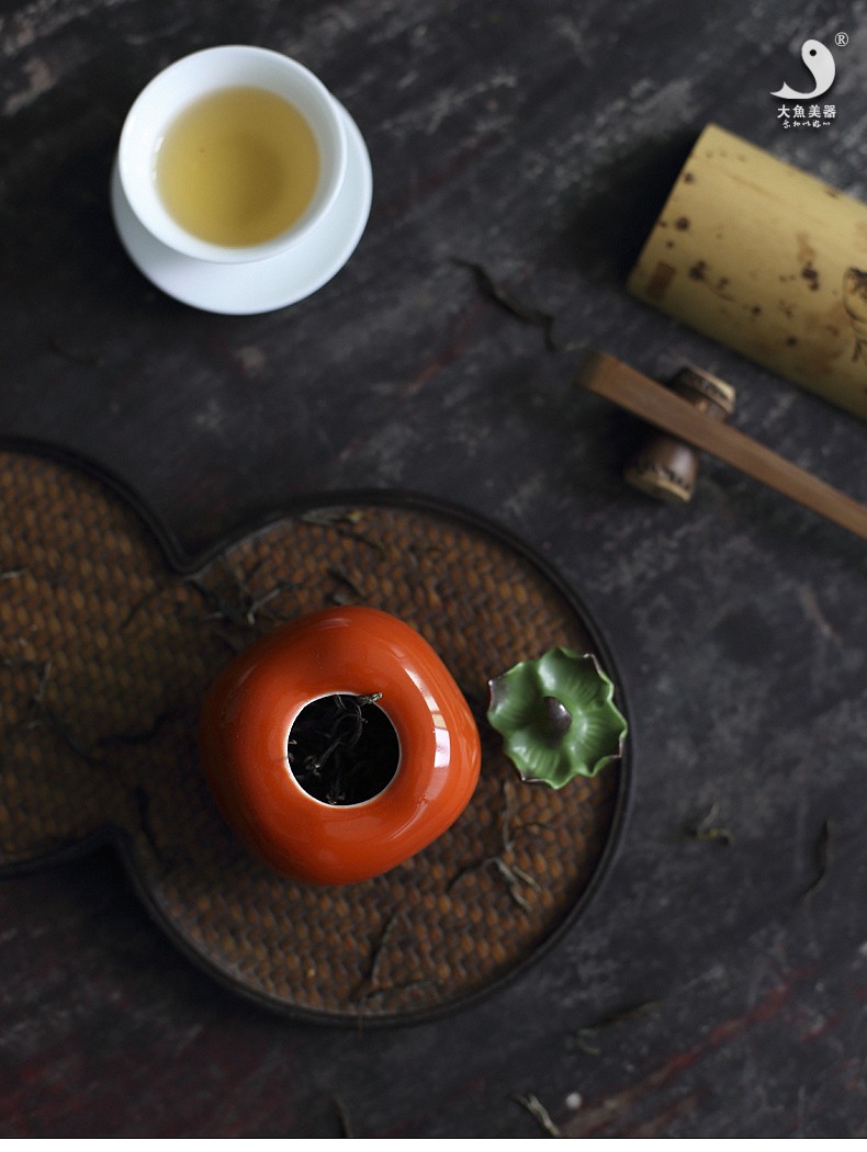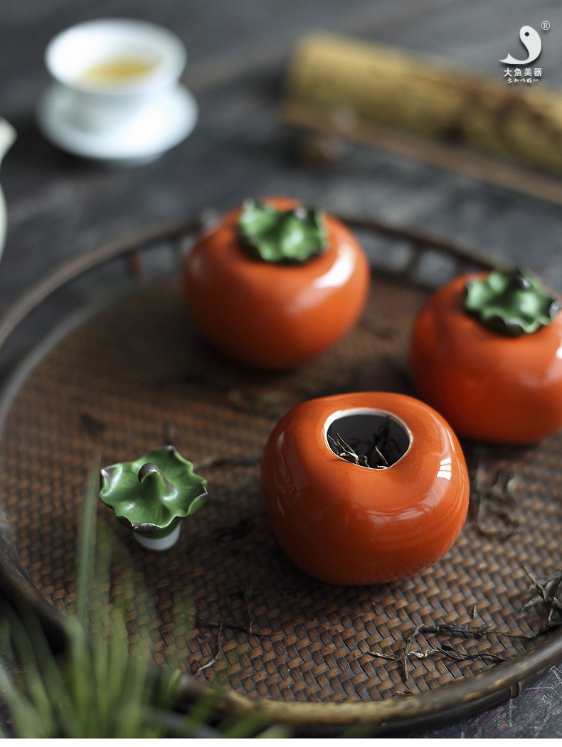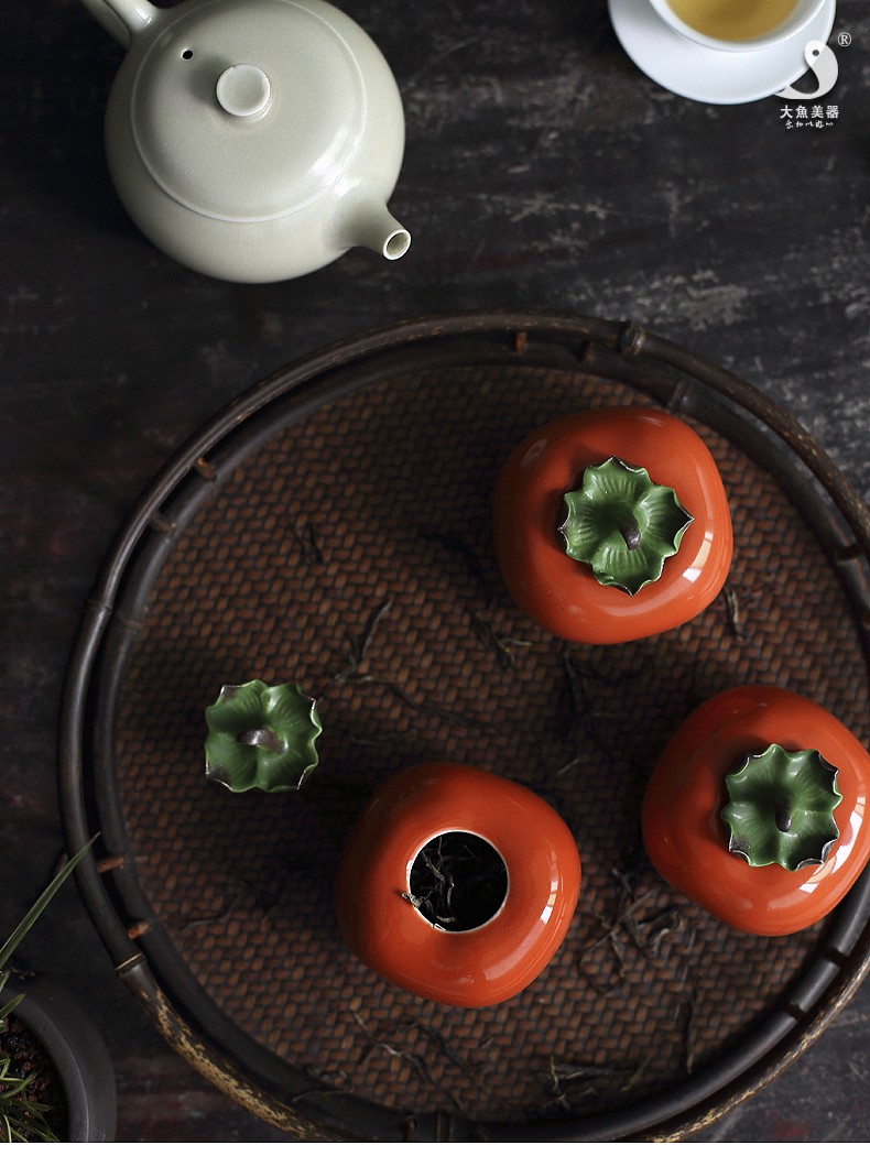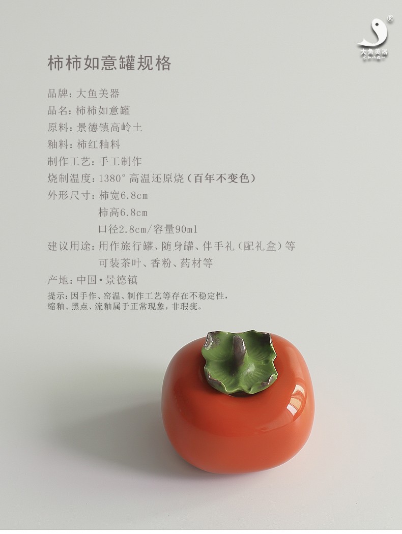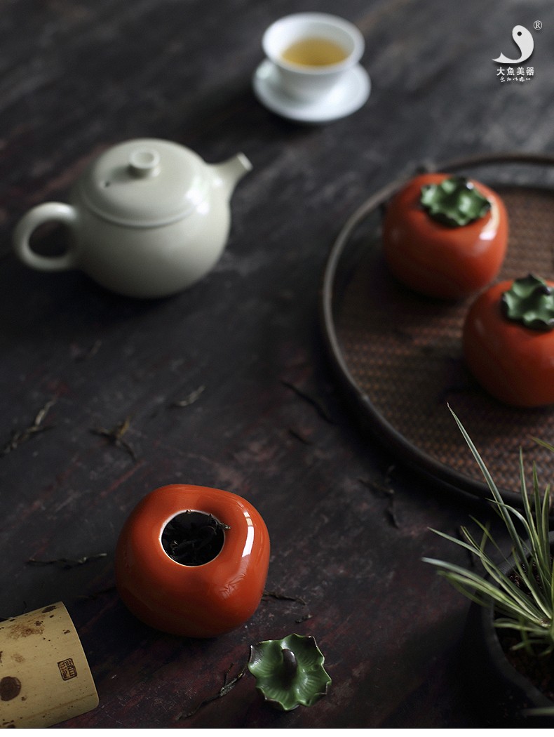 陶瓷柿子茶葉罐仿生設計柿柿如意旅行隨身罐景德鎮小號茶倉伴手禮1入