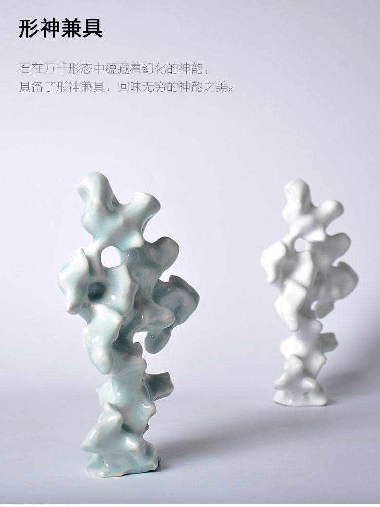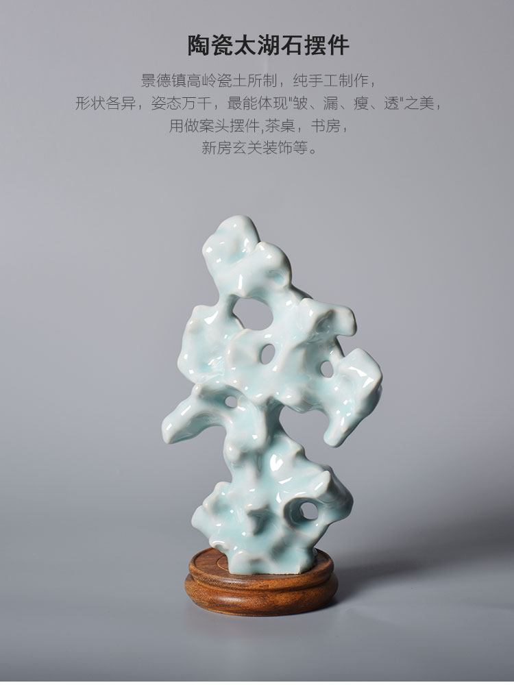 陶瓷太湖石小擺件手工山子創意書房筆架玄關茶席盆景枯山水假山石1入