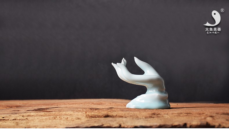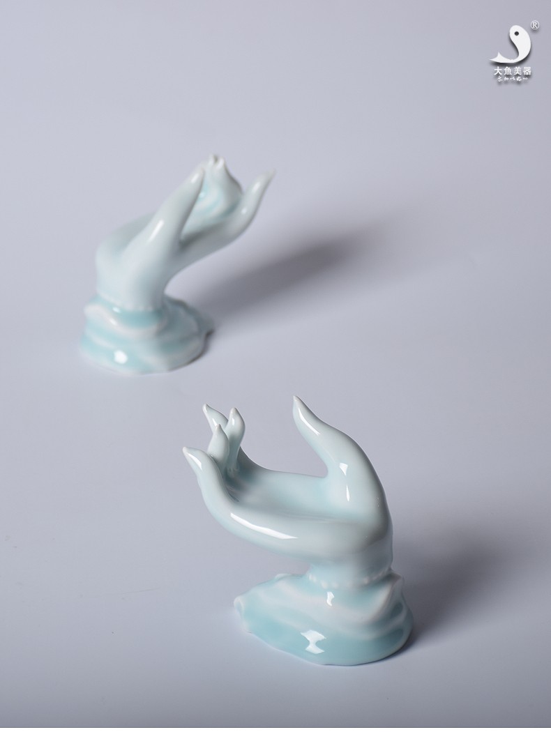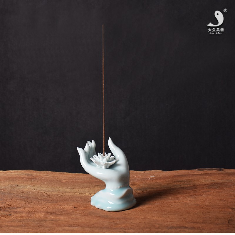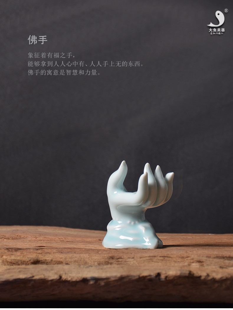 陶瓷佛手香插 影青瓷佛手蓮花線香插 觀音手臺桌面擺件創意名片夾1入