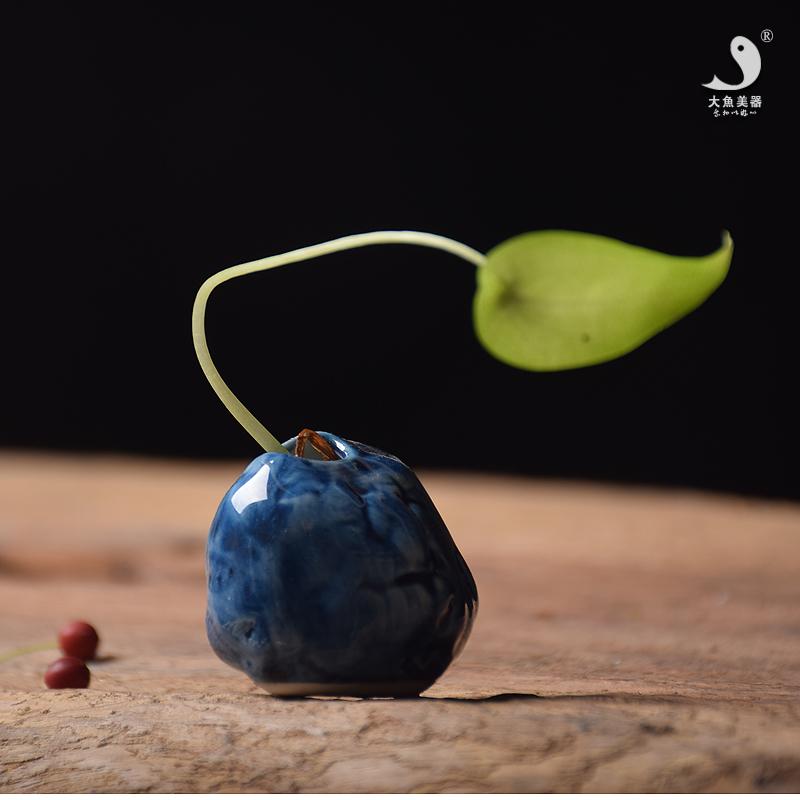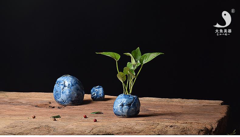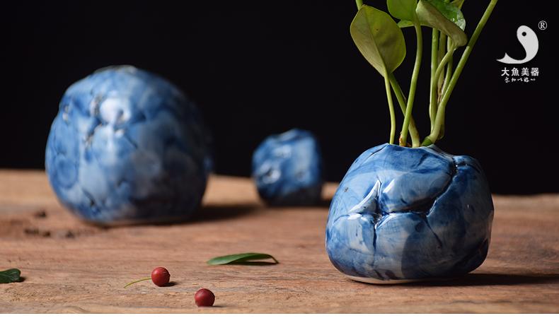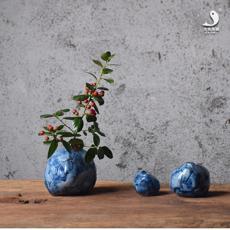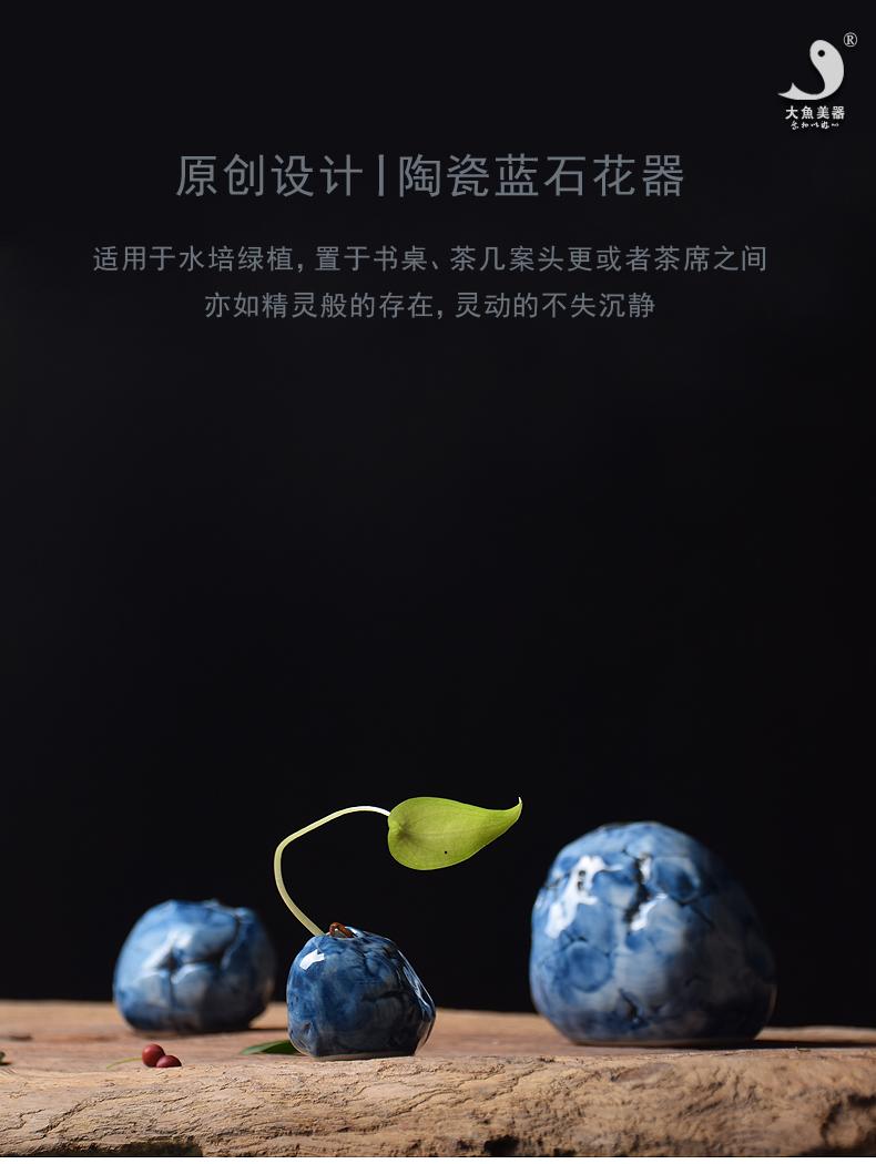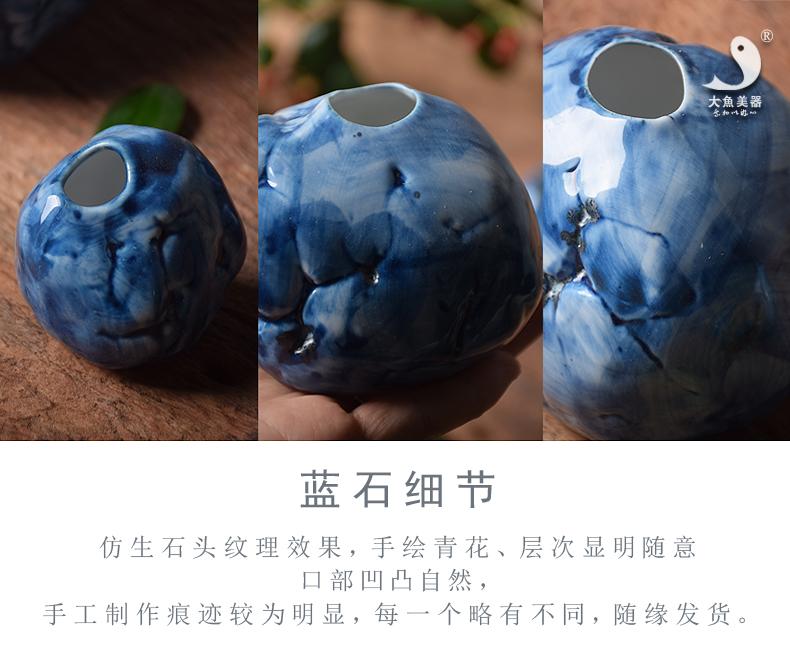 陶瓷水培花器多肉花瓶 手繪青花陶瓷石頭花插 辦公室擺件花盆小號1入