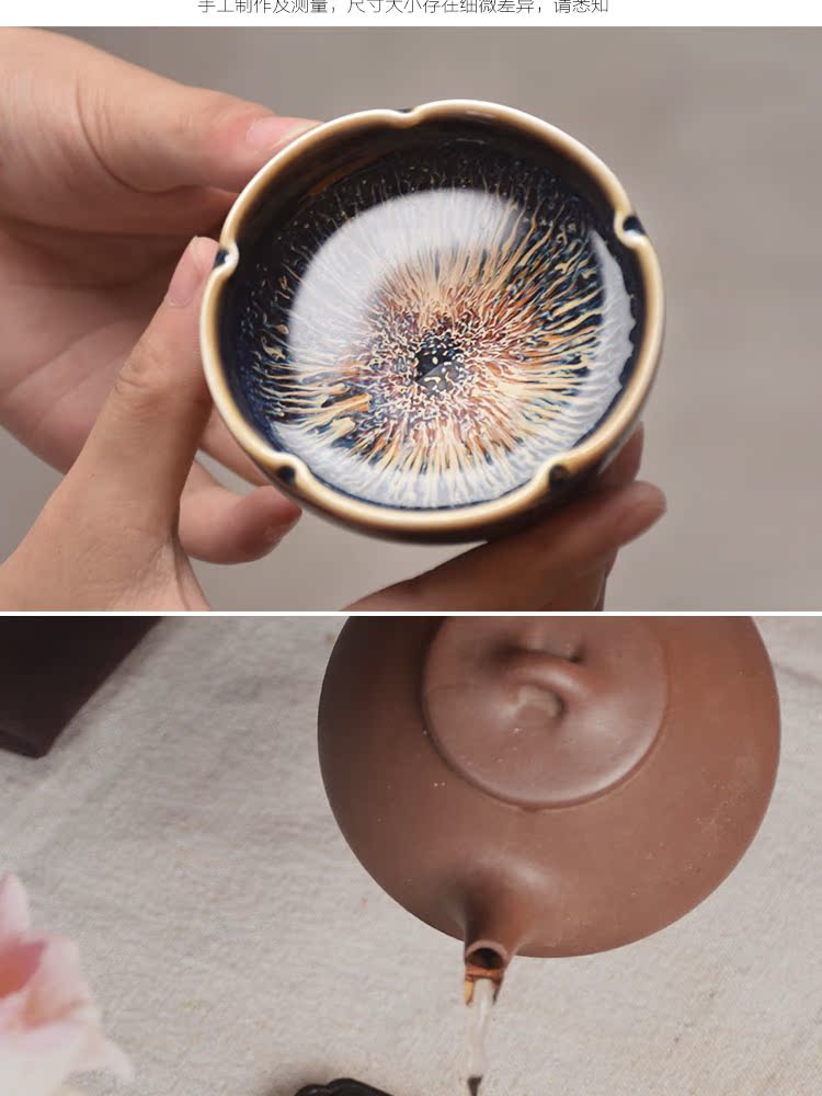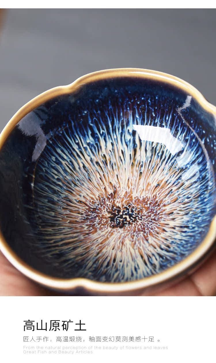陶瓷茶碗天目釉茶杯建盞杯兔毫盞景德鎮高溫窯變星空杯創意文創杯1入