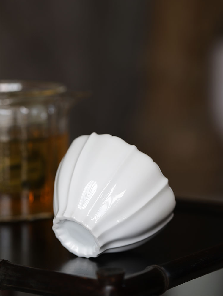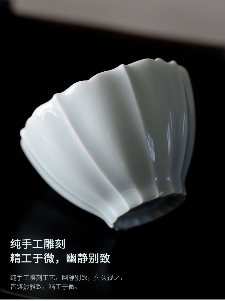陶瓷手工雕刻主人杯景德鎮功夫茶具品茗茶杯白瓷杯影青瓷花口單杯1入