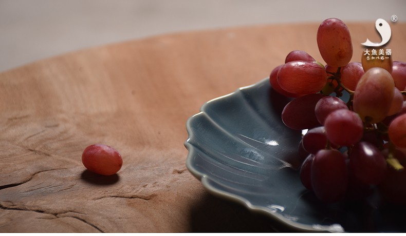 大魚美器陶瓷盤子景德鎮霽紅釉玉蘭花茶盤霽青托盤點心盤藝術餐盤1入