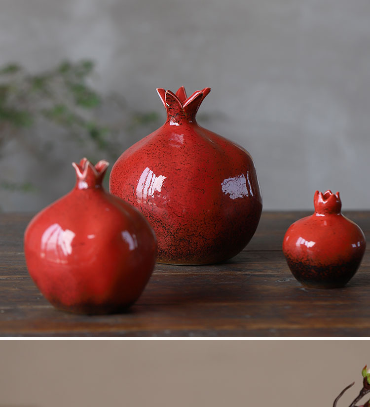 [2]陶瓷石榴擺件水果裝飾多子寓意禮物景德鎮陶瓷飾品臺面小花器家用1入