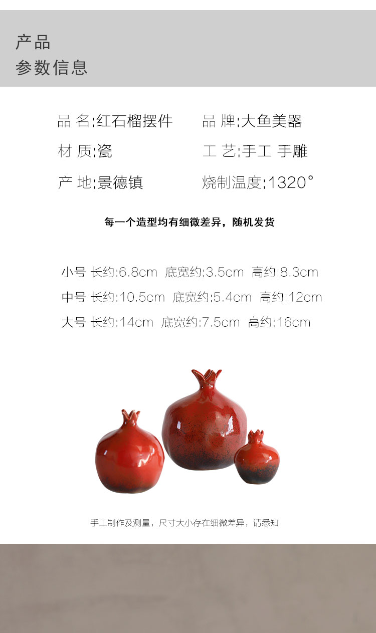 陶瓷石榴擺件水果裝飾多子寓意禮物景德鎮陶瓷飾品臺面小花器家用1入