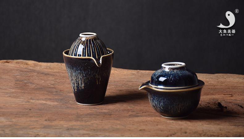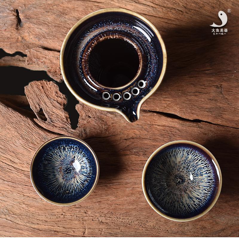 陶瓷旅行泡茶碗一人壺快客杯景德鎮高溫窯變流年似水辦公茶具新款1入