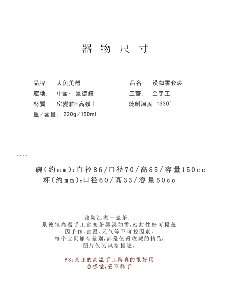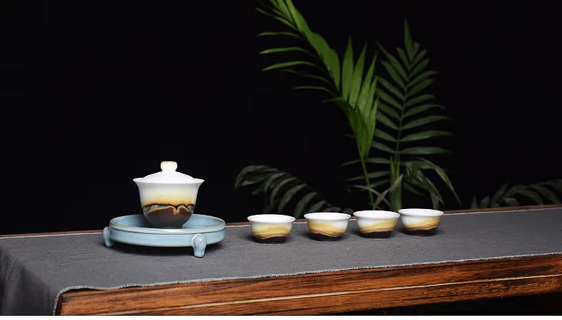 陶瓷蓋碗套組窯變三才碗景德鎮泡茶器小號功夫茶具禮品整套小蓋杯1入