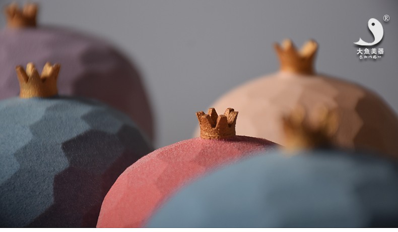 大魚美器延禧攻略莫蘭迪色系陶瓷石榴客廳創意仿真擺件文藝辦公桌1入