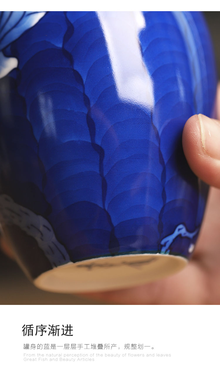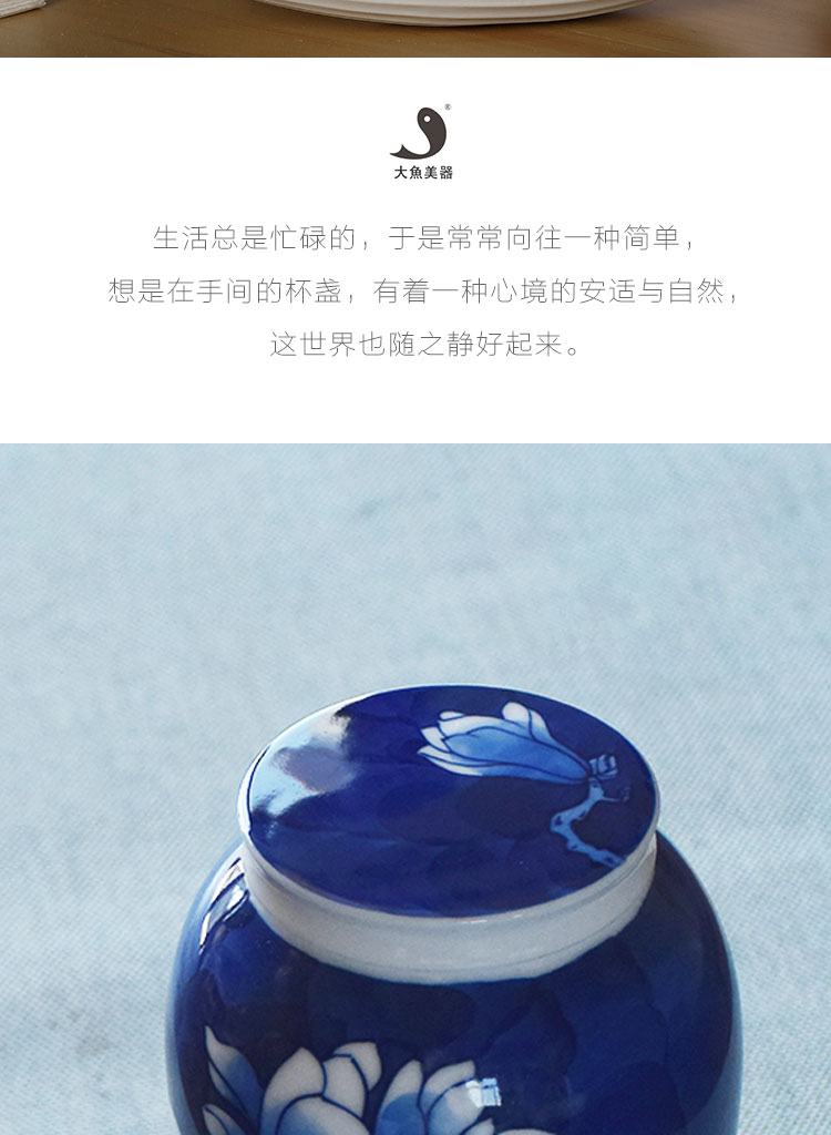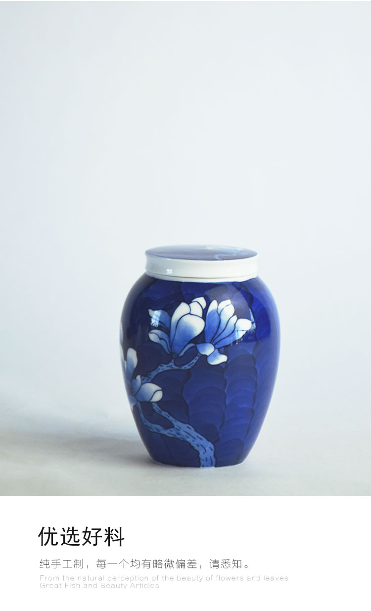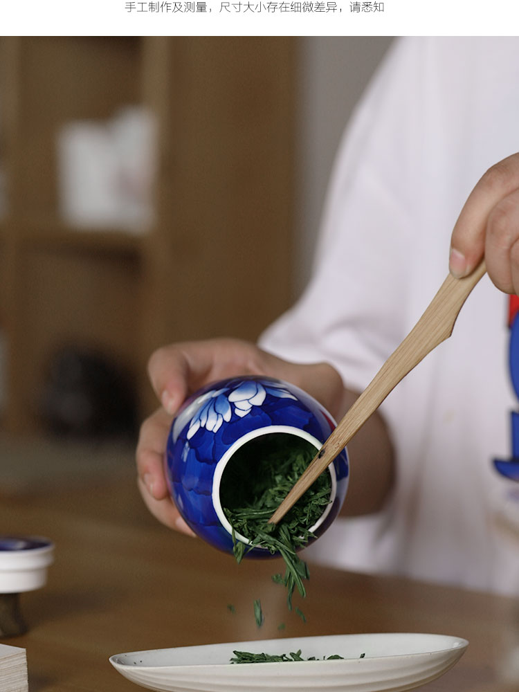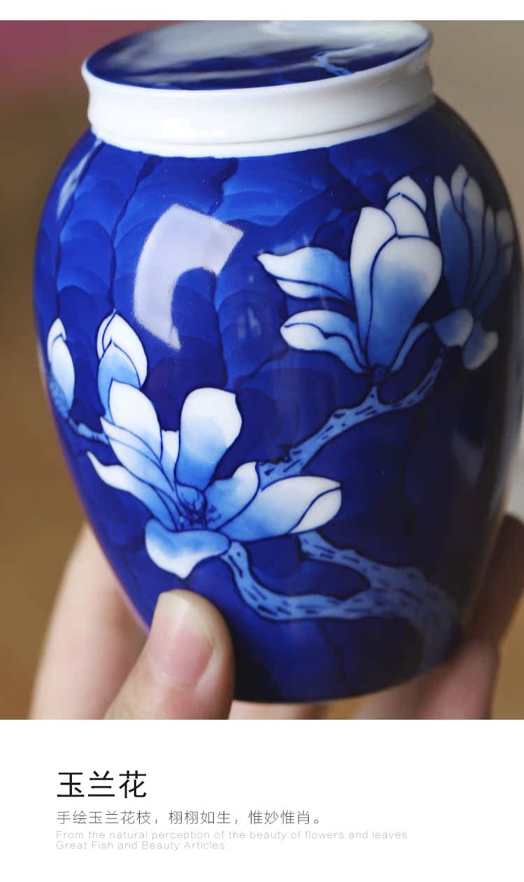 陶瓷茶葉罐玉蘭茶罐青花瓷小號茶倉儲物罐景德鎮手繪創意文藝罐子1入