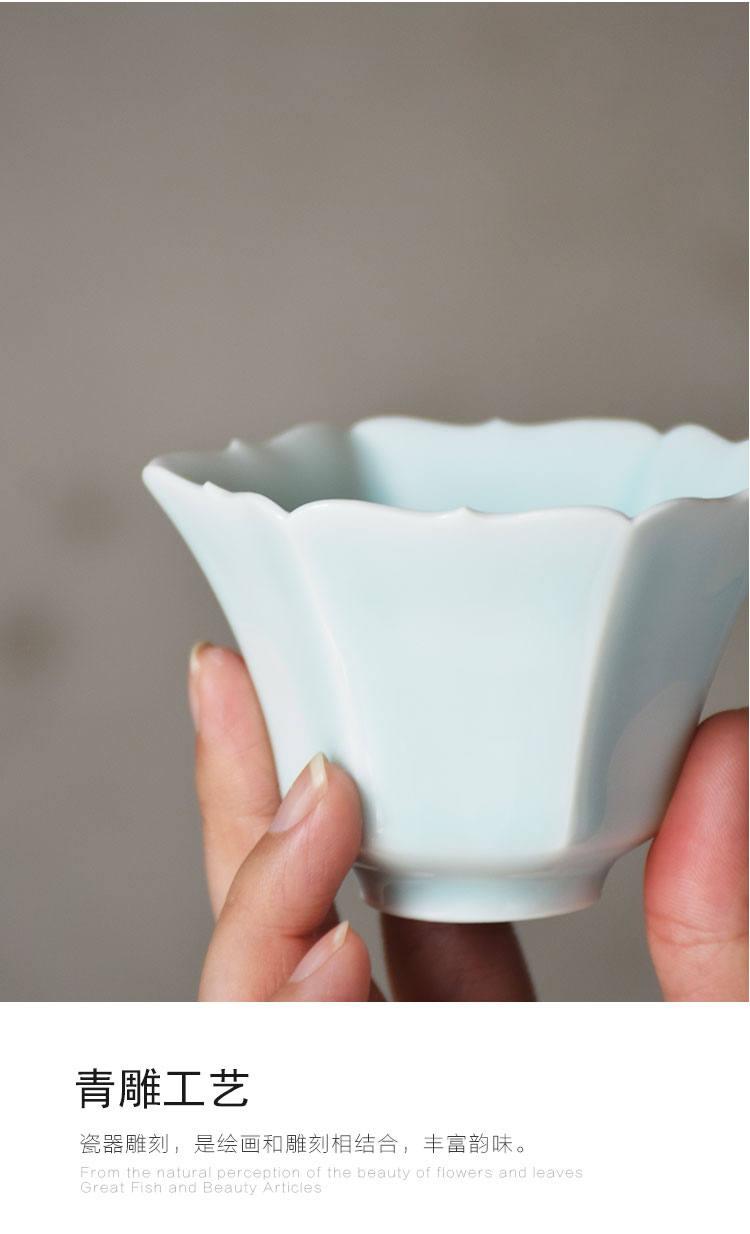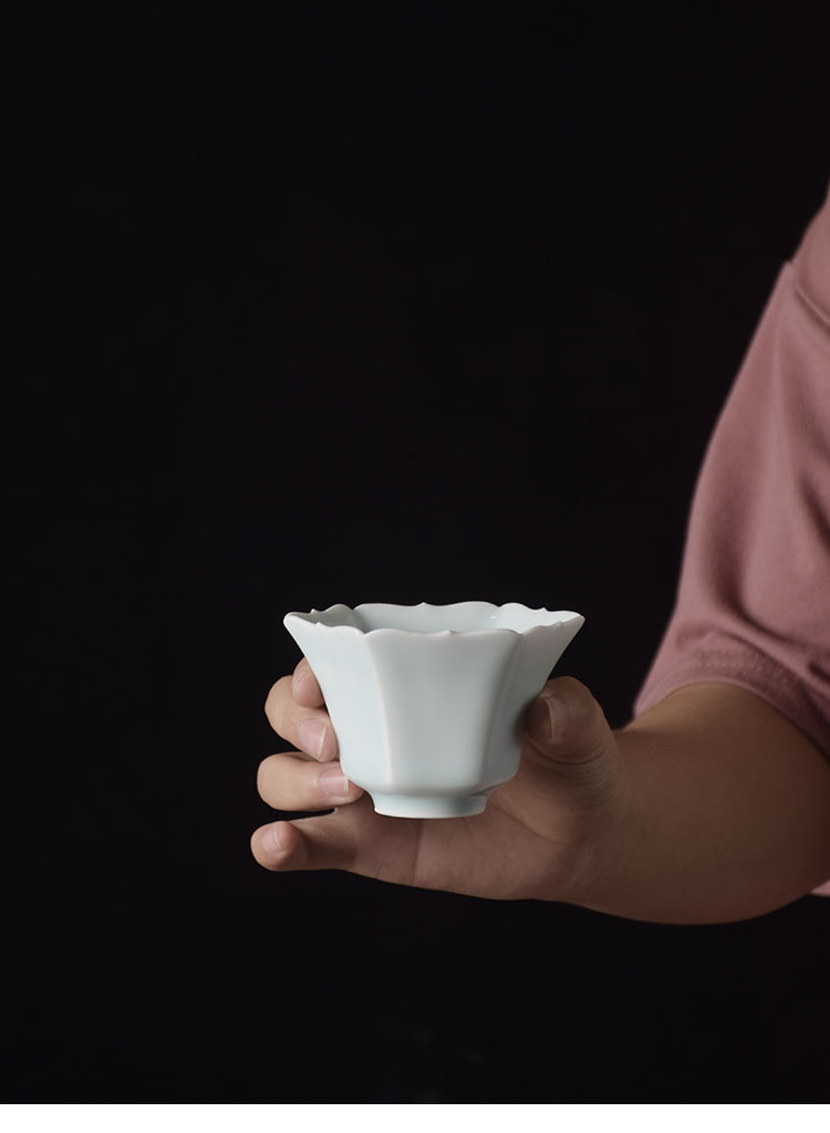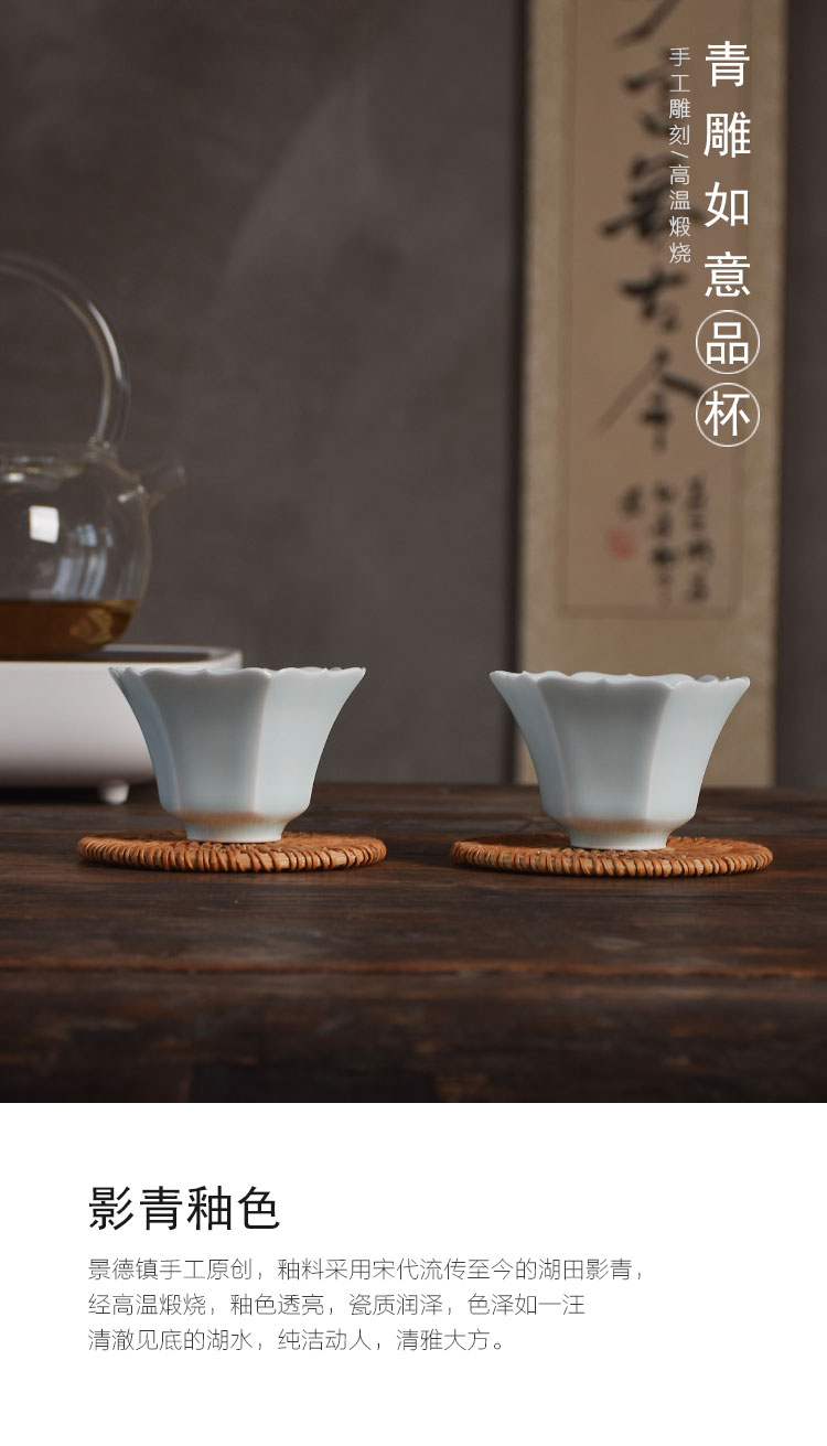 青雕如意杯陶瓷主人杯個人杯景德鎮純手工功夫茶具茶碗湖田影青瓷1入