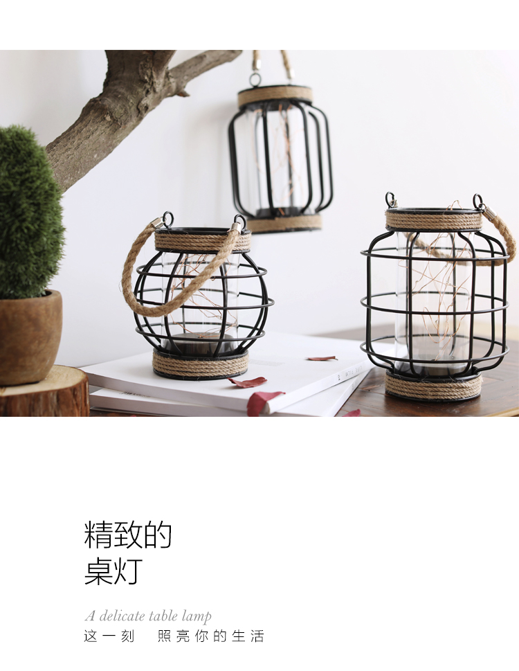 北歐簡約鐵藝臺燈ins客廳酒柜臥室裝飾品擺件床頭桌面幾何小夜燈1入