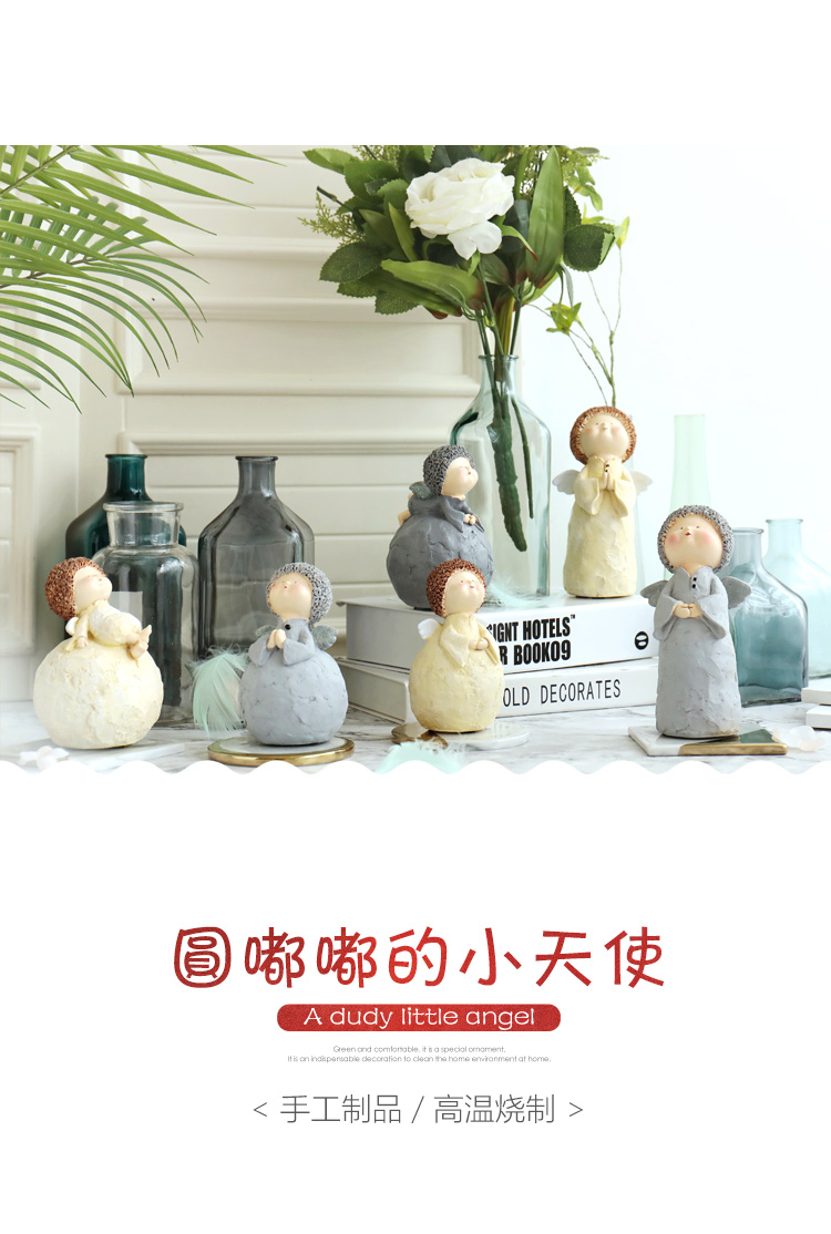 創意天使娃娃擺件卡通簡約樹脂小擺設家居客廳酒柜裝飾品兒童禮物1入
