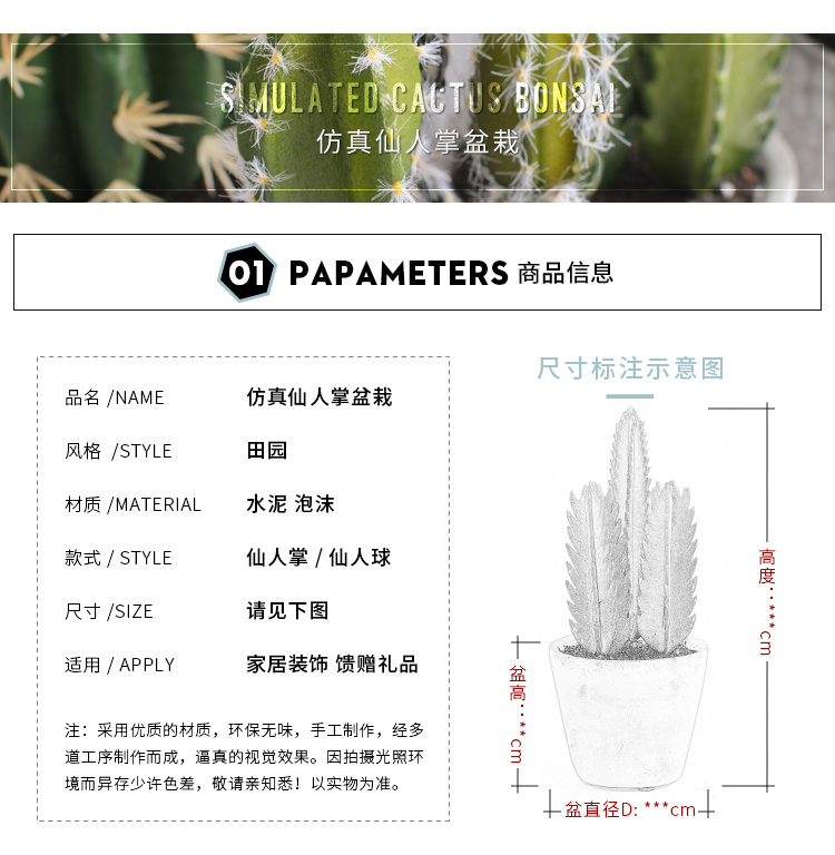 仿真綠植多肉小盆栽陶瓷植物仙人掌盆景客廳電視柜房間裝飾品擺件1入