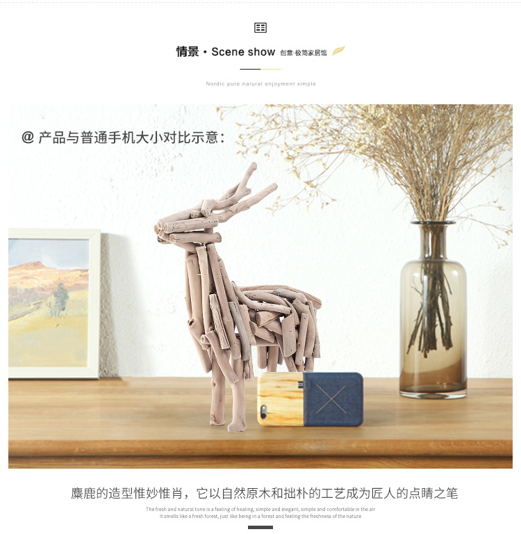 創意麋鹿擺件客廳電視柜辦公桌面裝飾品店鋪櫥窗拍攝道具禪意擺設1入