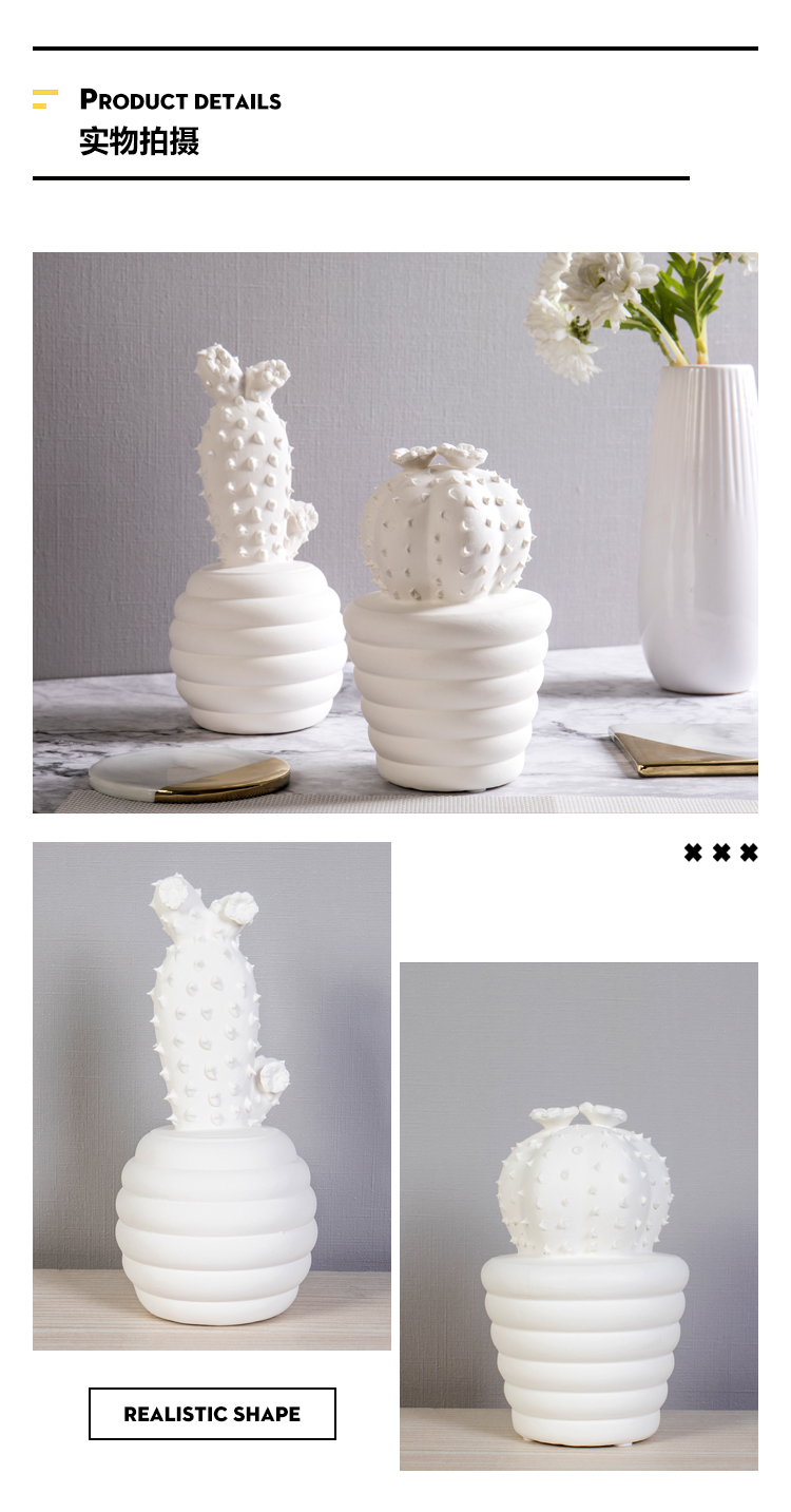 北歐創意仙人掌陶瓷工藝品擺件現代簡約客廳酒柜電視柜裝飾品擺設1入