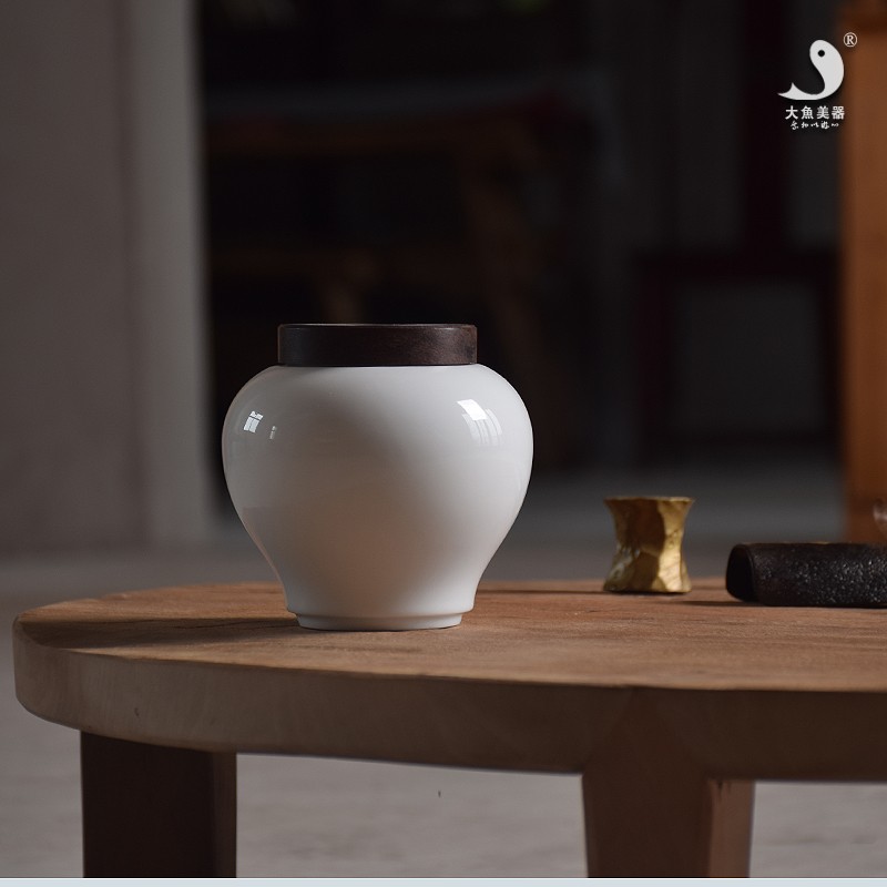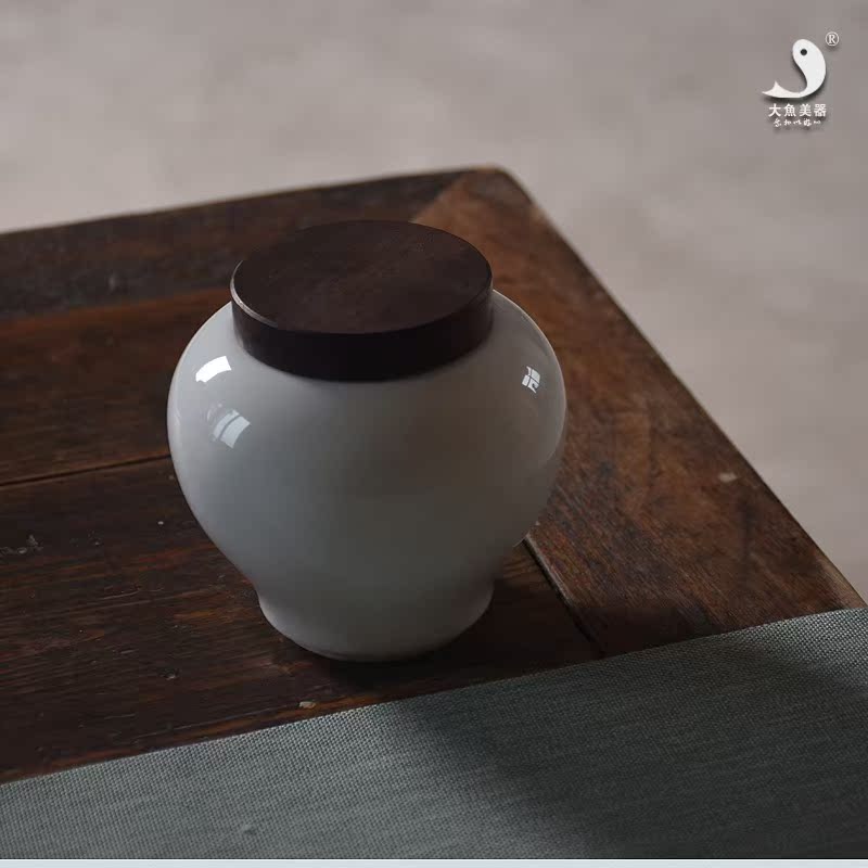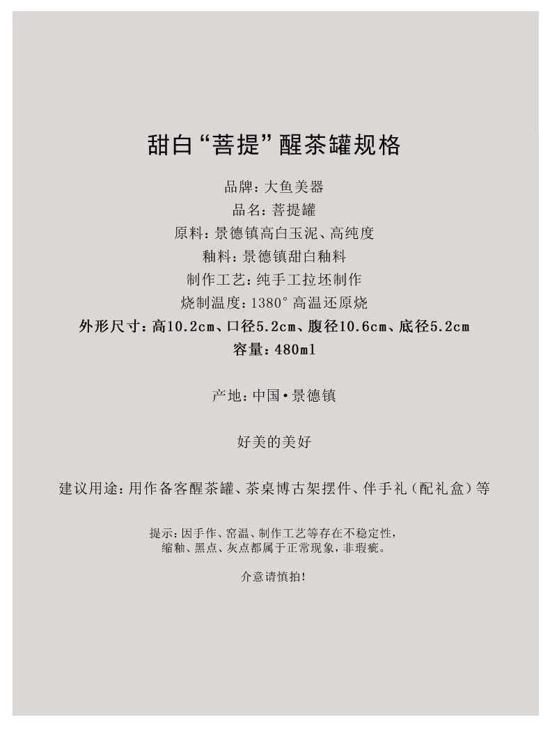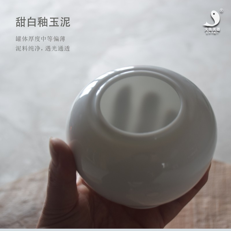 醒茶罐陶瓷茶葉罐小號景德鎮甜白釉玉瓷功夫茶具白瓷罐子茶道配件1入