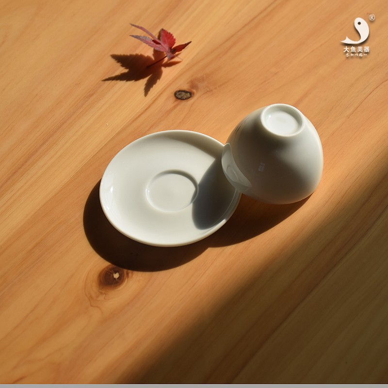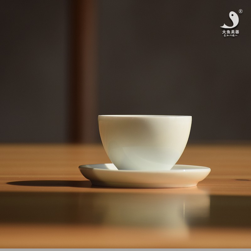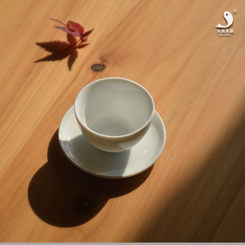 青白瓷茶杯陶瓷景德鎮純手工功夫茶具杯子小號主人杯帶托品茗茶杯1入
