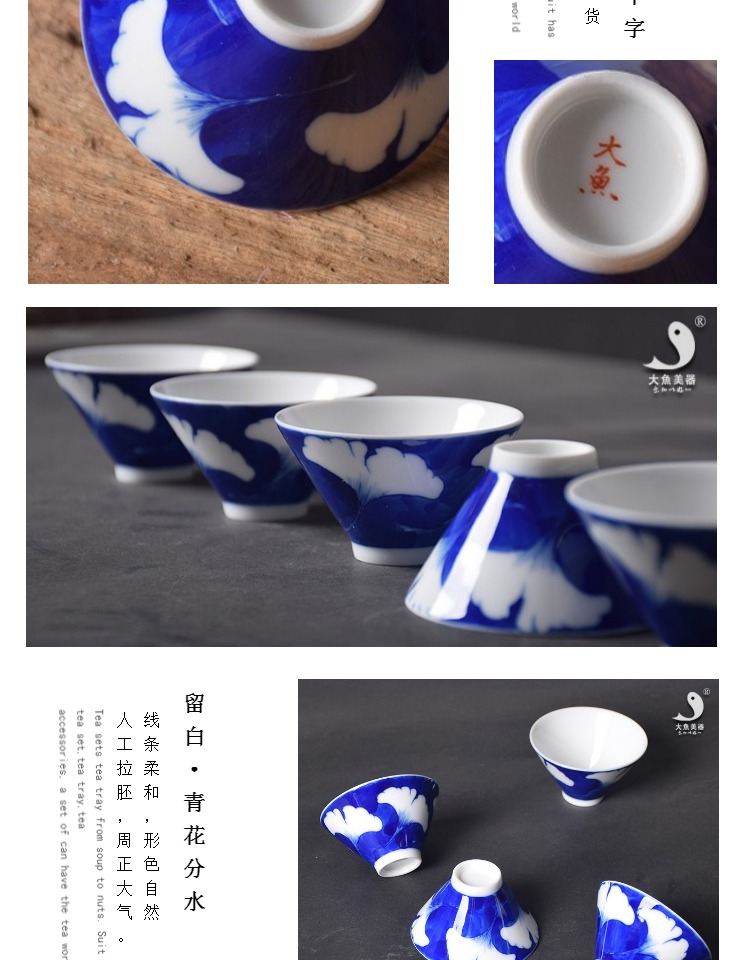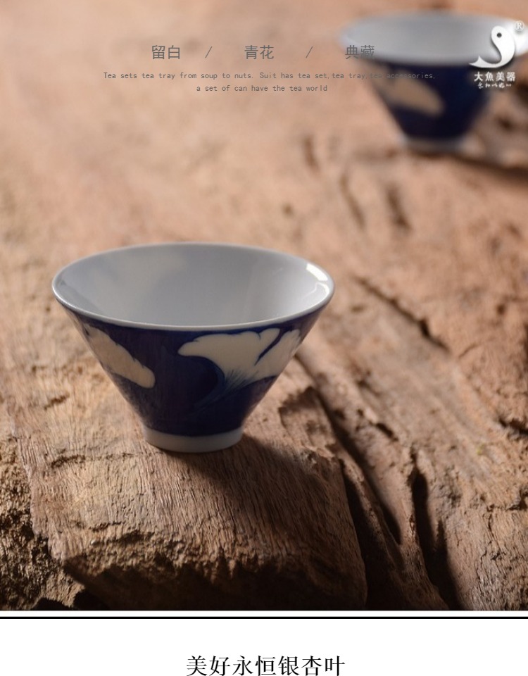 青花茶杯手繪景德鎮陶瓷斗笠杯功夫茶具主人杯銀杏葉簡約現代杯子1入