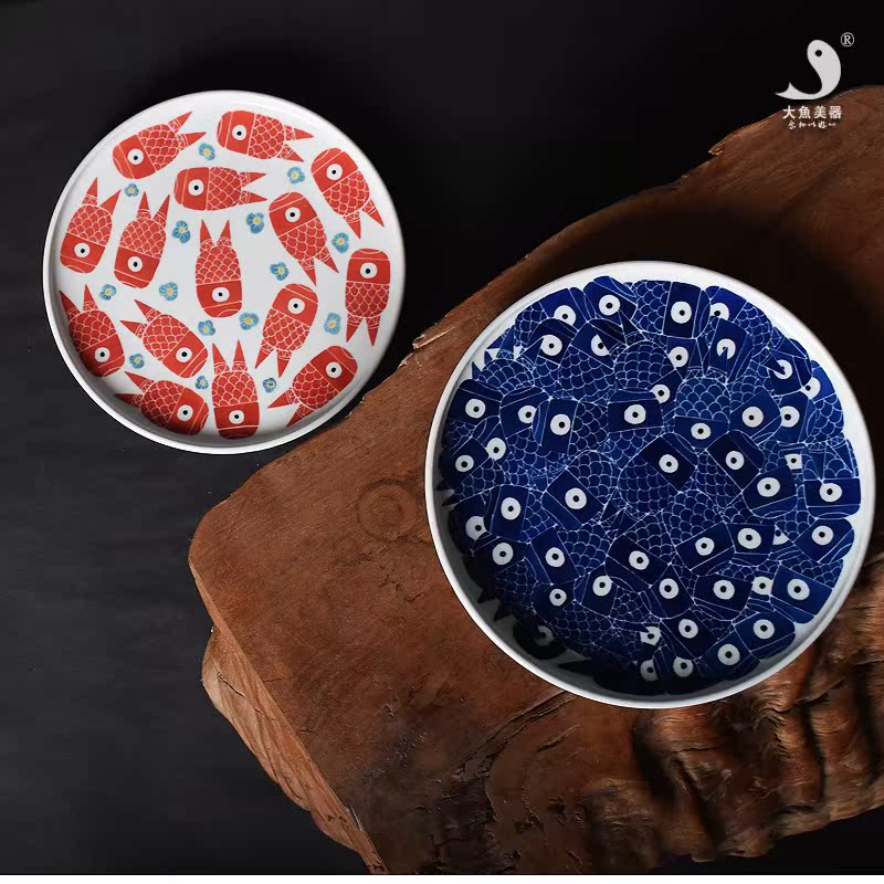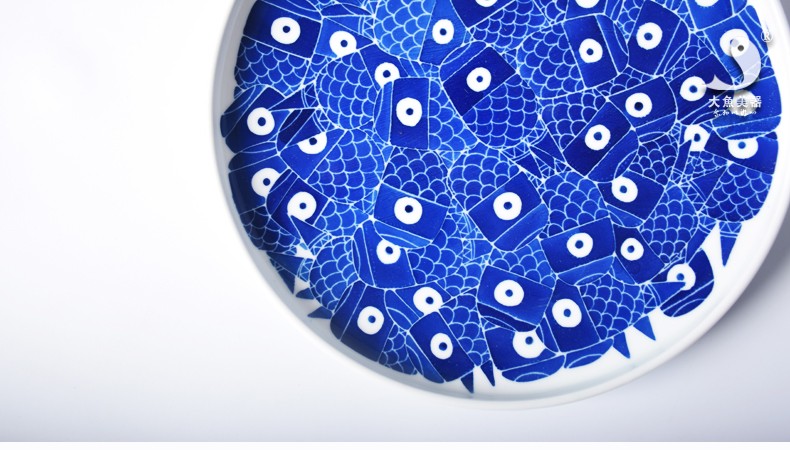 陶瓷創意餐盤景德鎮瓷盤手工繪畫魚手繪青花盤碟茶道茶盤文藝復古1入