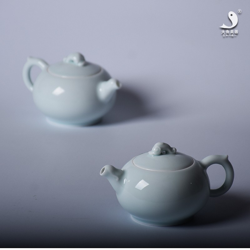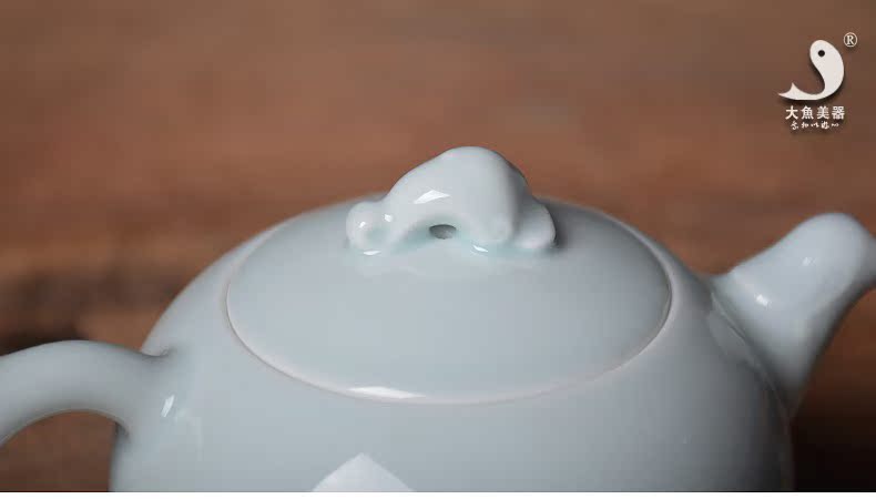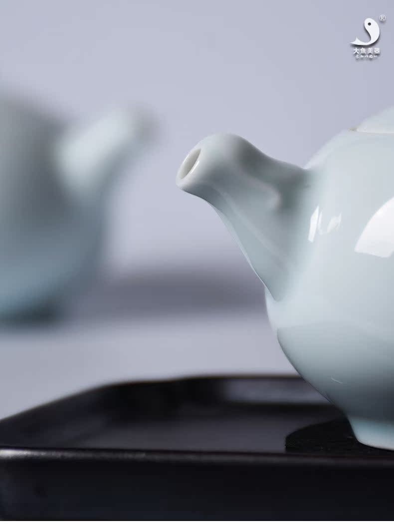 青瓷茶壺 景德鎮影青瓷如意功夫純手工茶壺 文藝創意茶道茶具新品1入